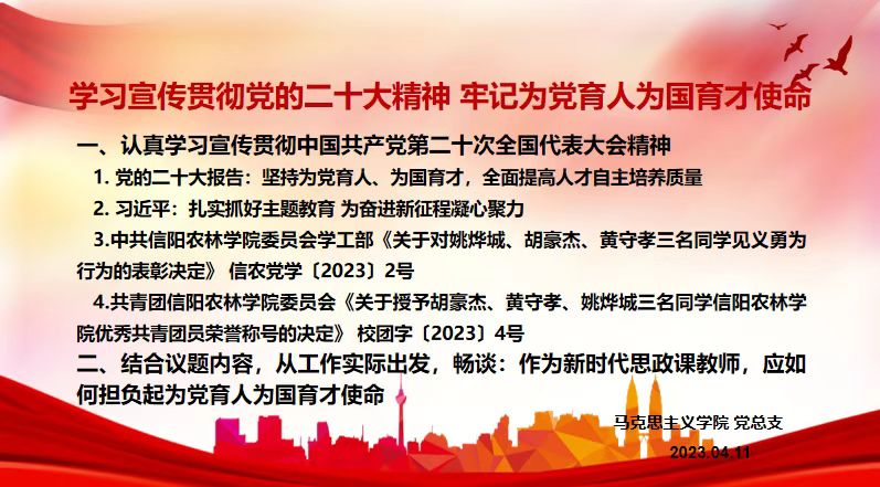 2023年4月11日下午,马克思主义学院在学术交流中心509会议室召开“学习宣传贯彻党的二十大精神 牢记为党育人为国育才使命”工作会。会议由形势与政策教研室承办,王改丽主持,全体教师参加会议。
