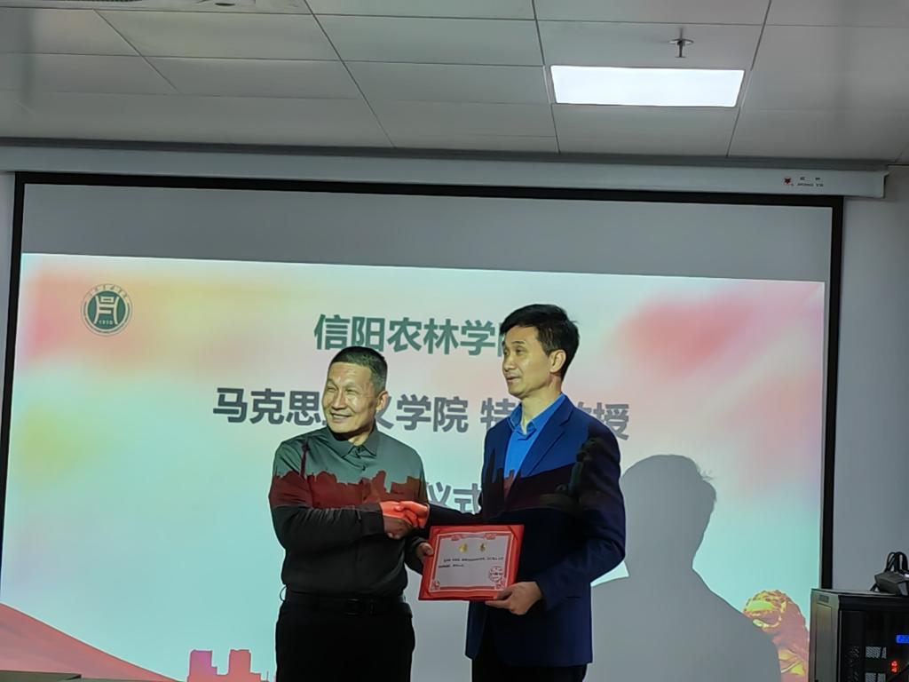 4月23日下午,马克思主义学院在学术交流中心509会议室举行特聘教授聘任仪式,聘任北京师范大学法学院刘德良为学院特聘教授,副校长刘开华代表学校向刘德良颁发聘书。
