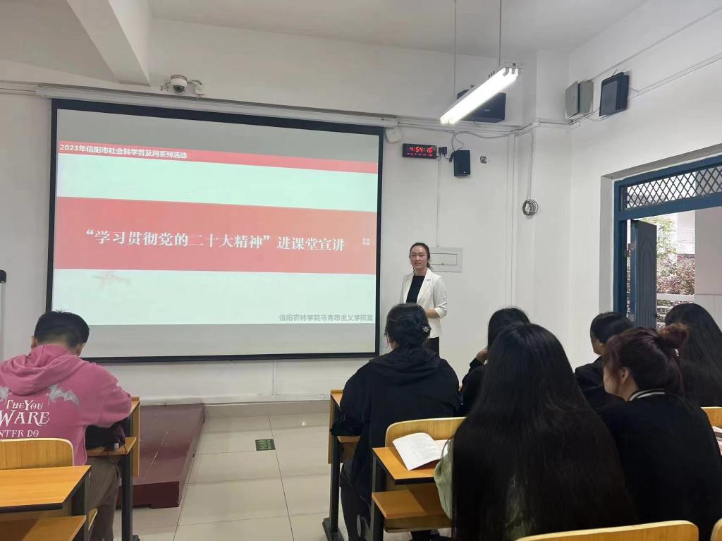 9月12日,由信阳市委宣传部、信阳市社科联主办的2023年信阳市社会科学普及周开幕式在beat365在线平台官网举办。根据上级文件精神要求,结合自身实际,自活动发布起,马克思主义学院紧扣社科普及宣传主题“宣传贯彻党的二十大精神,凝心聚力共建现代化河南”,积极开展系列活动。