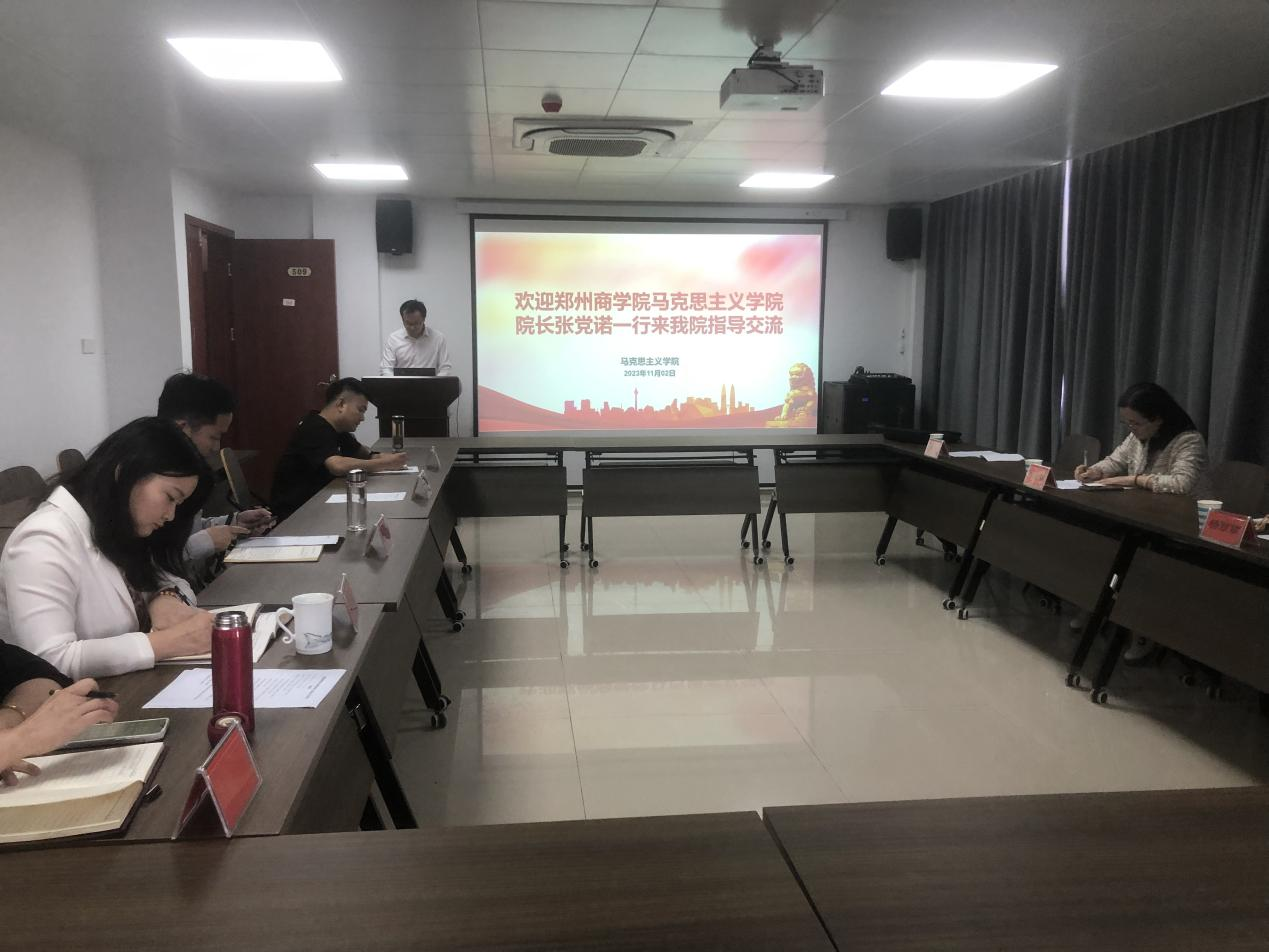 2023年11月2日上午,郑州商学院马克思主义学院院长张党诺一行来我院指导交流。学院副院长周俊以及学院教师代表参加交流会。