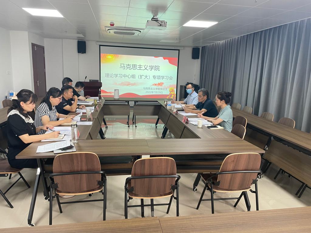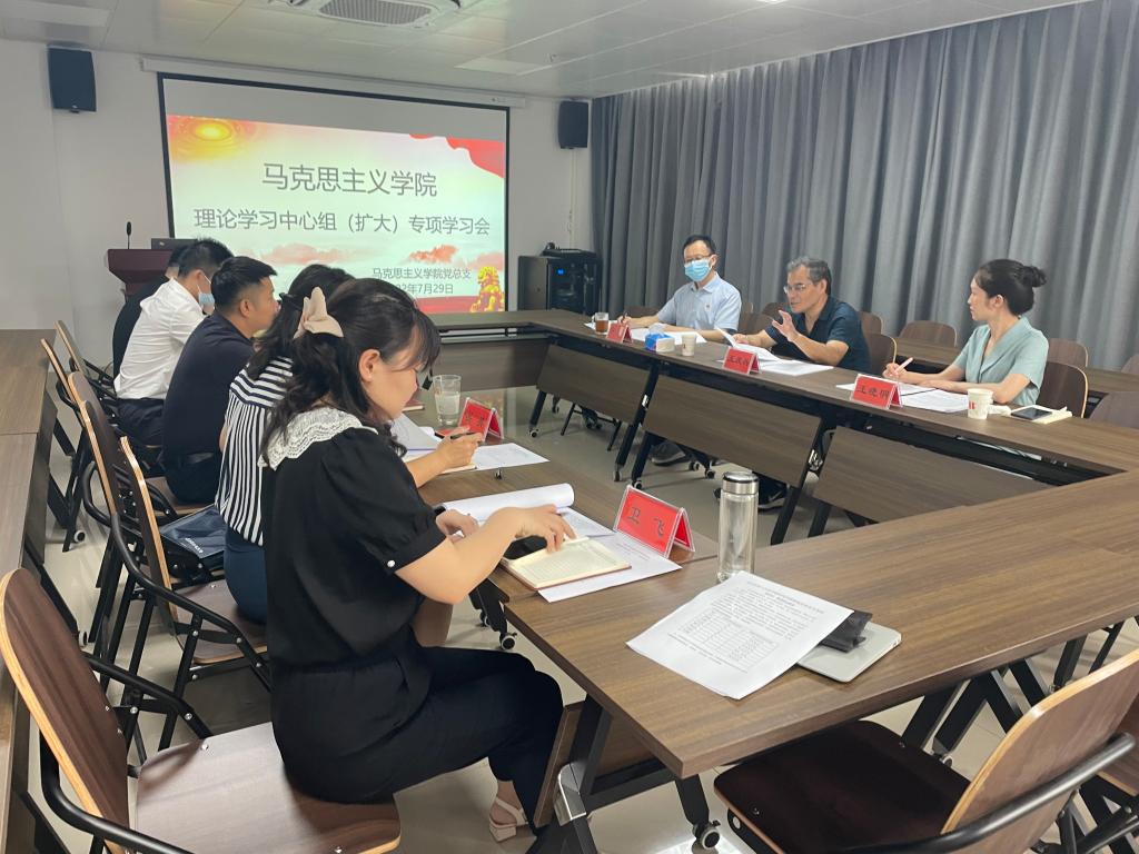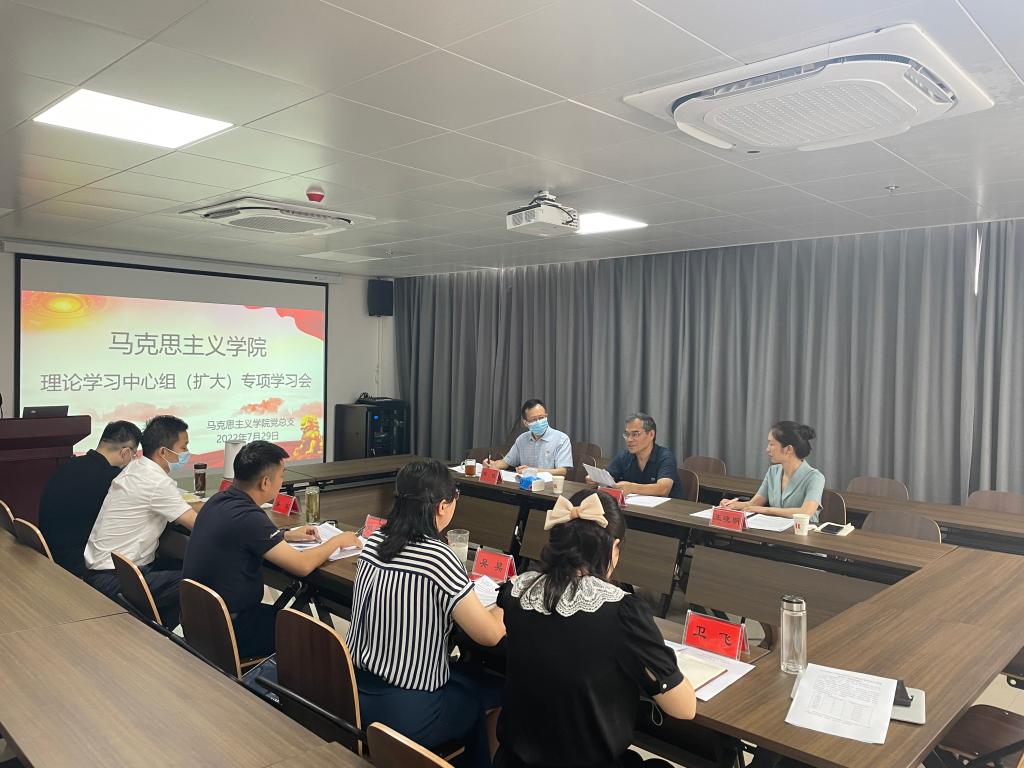 为深入贯彻落实全面从严治党主体责任,推动全面从严治党向纵深发展,按照十一届省委第一轮巡视整改工作要求和学校党委工作安排,7月29日上午,马克思主义学院党总支在学术交流中心509会议室召开理论学习中心组(扩大)专项学习会。校党委副书记王庆兵到场参加学习。会议由学院党总支副书记王晓明主持,党总支理论学习中心组成员、学院科级以上干部参加会议。