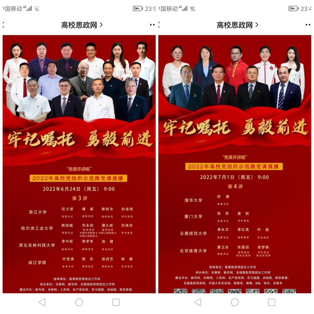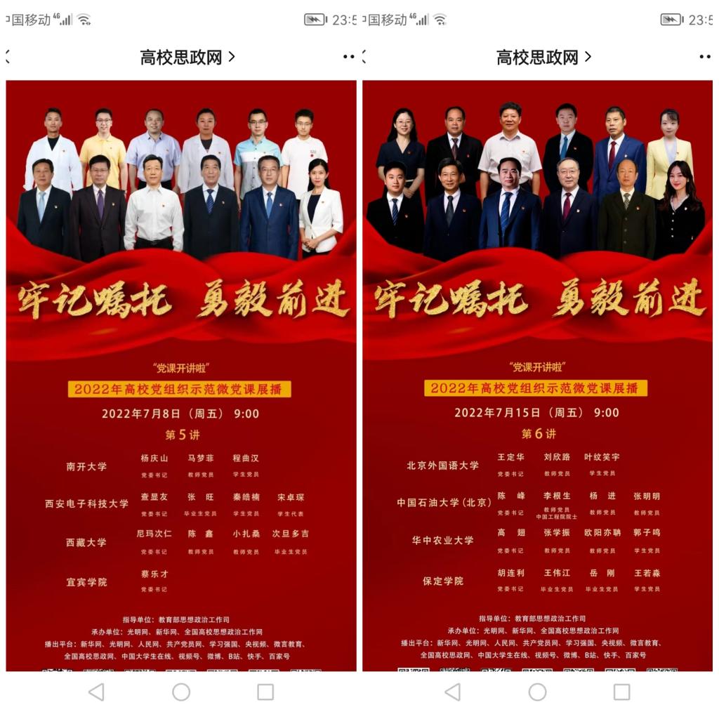 7月15日上午,马克思主义学院党总支积极组织各党支部借助线上平台观看由教育部思政司组织开展的“牢记嘱托,勇毅前进”2022年高校党组织示范微党课第6讲(前期已组织党员教职工线上观看示范微党课1-5讲)。