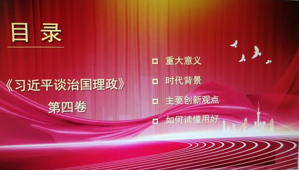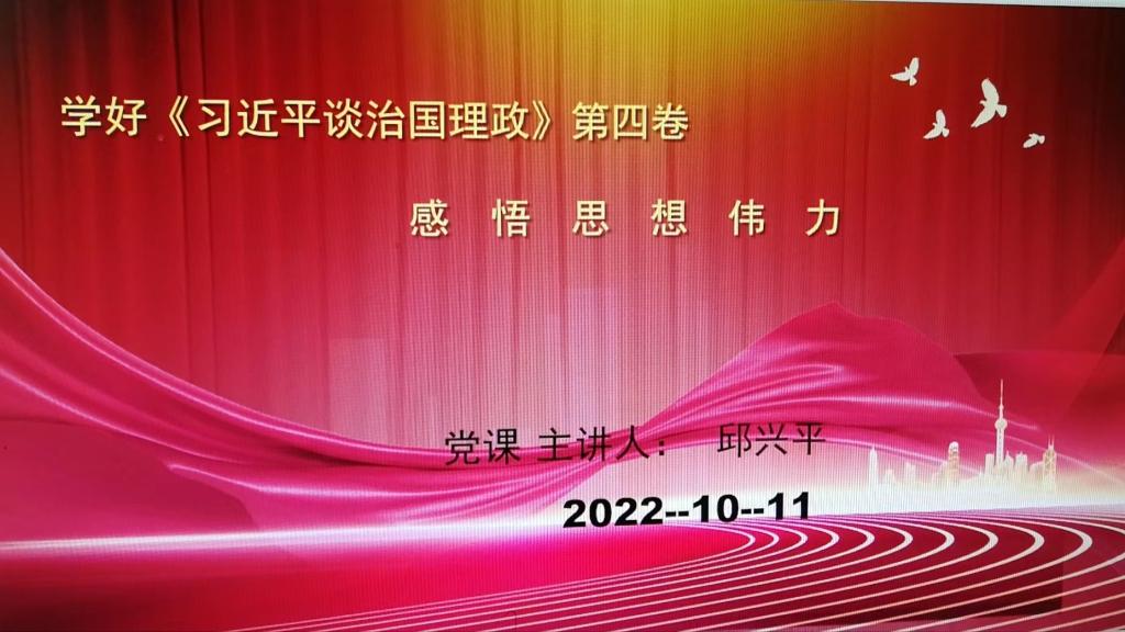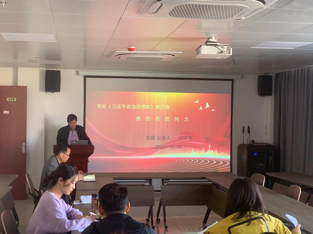 10月11下午,马克思主义学院党总支书记、院长邱兴平在学术交流中心509会议室,以“学好《习近平谈治国理政》(第四卷),感悟思想伟力”为题,为全体党员上了一堂生动的主题党课。