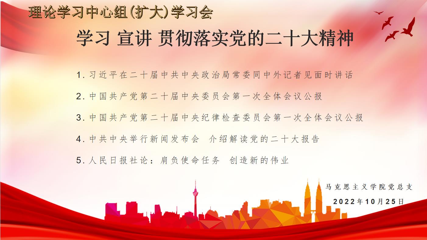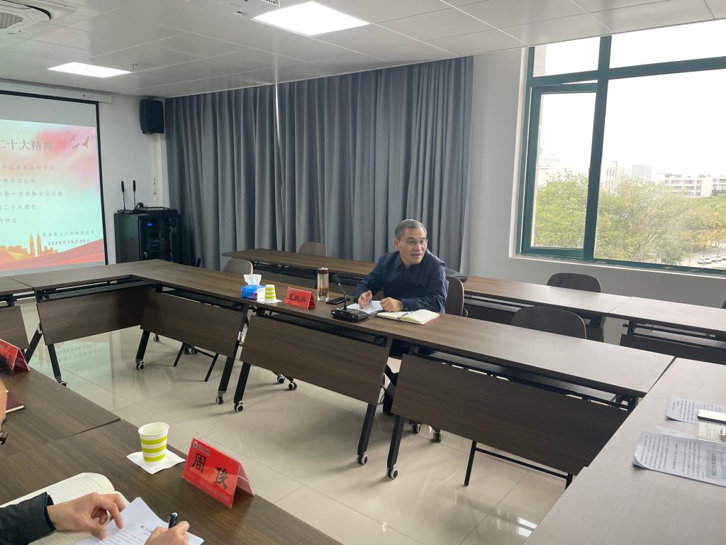 邱兴平表示,马克思主义学院承担着“为党育人、为国育才”的重要职责和光荣使命,学习、宣传、贯彻落实党的二十大精神,是我们当前和今后一个时期的首要政治任务。全体党员教师应该以高度的政治自觉、理论自觉和责任担当来深入学习、宣传、贯彻落实党的二十大精神,用心融入思政课堂,用情书写时代强音,用智宣讲服务社会。要以二十大精神为引领,奋力推进马克思主义学院高质量发展。(马克思主义学院 万燕玲)