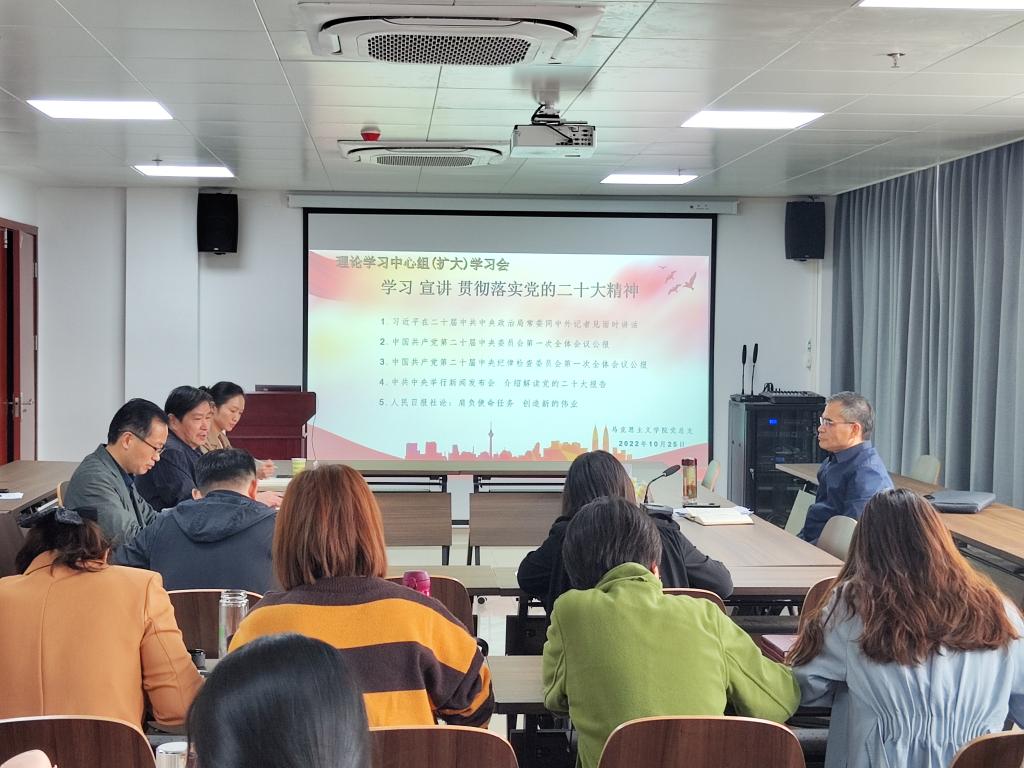 10月25日下午,马克思主义学院党总支在学术交流中心509会议室召开理论学习中心组(扩大)会议。校党委副书记王庆兵参加学习。会议由学院党总支书记、院长邱兴平主持,全体党员参加会议。