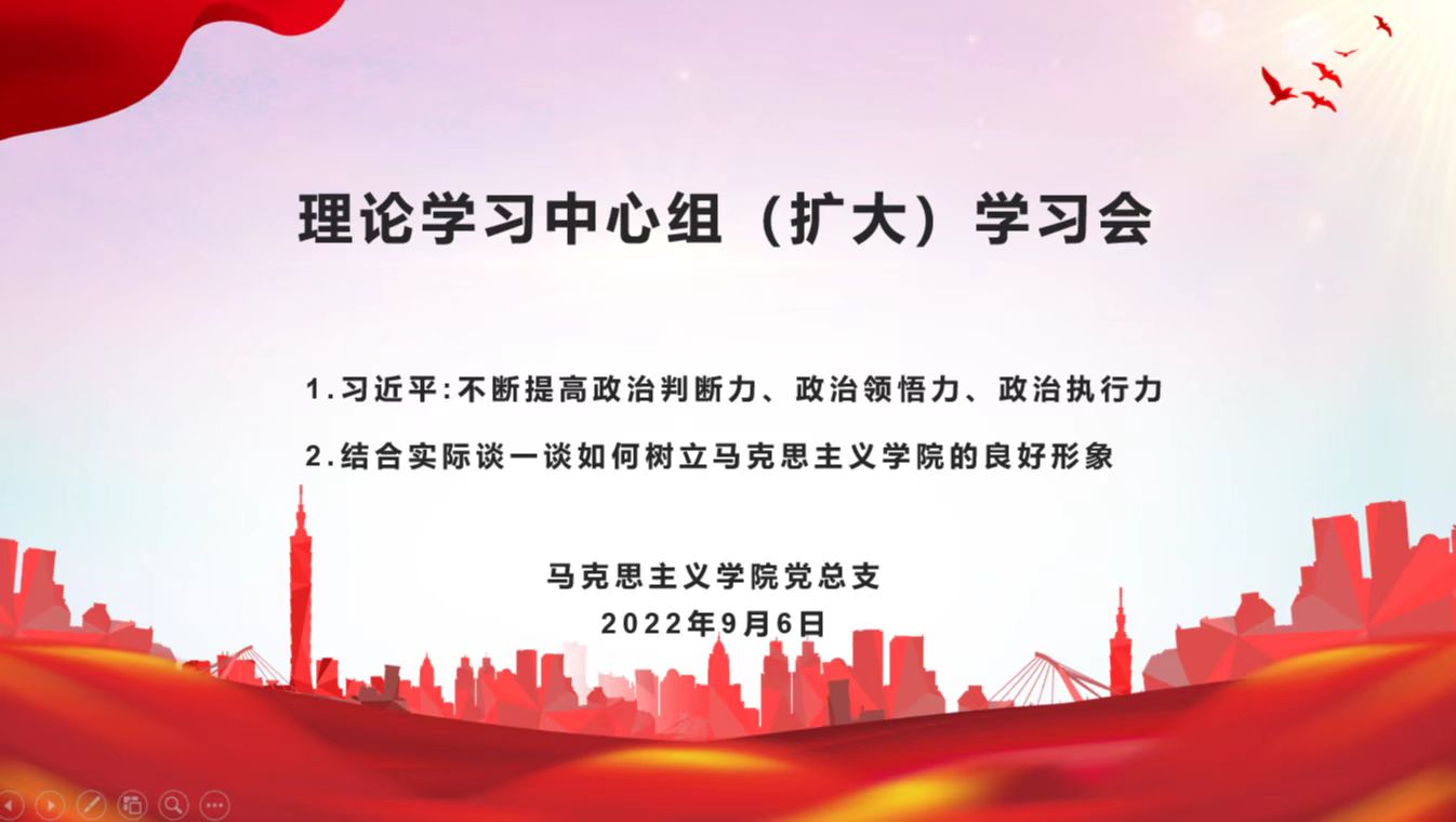 会议主要围绕“不断提高政治判断力、政治领悟力、政治执行力”和“树立马克思主义学院的良好形象”两个主题进行学习研讨。与会同志就主题内容进行交流研讨发言,积极踊跃畅谈。