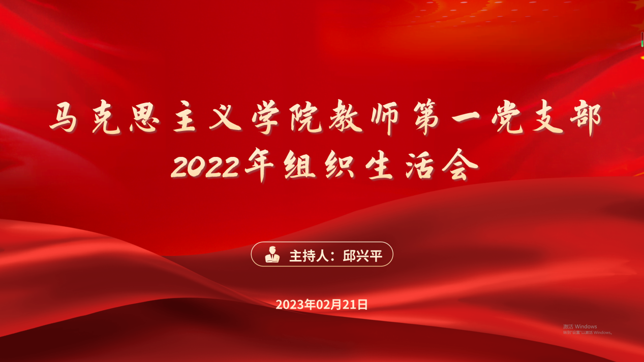 2月21日下午,马克思主义学院教师第一党支部召开2022年度组织生活会,教师第一党支部全体成员参加会议。会议由党支部书记邱兴平主持。