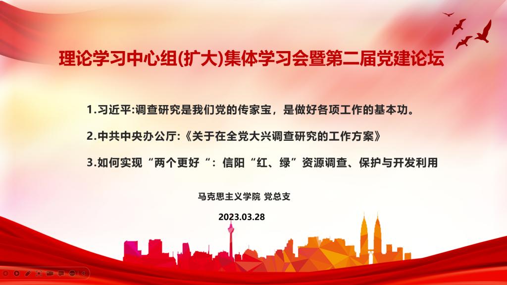 会议主要围绕如何大兴调查研究之风,更好地助力信阳“红、绿”资源调查、保护与开发利用,更好地助推学院党建工作的开展等主题进行交流与研讨,与会党员纷纷表示,调查研究是我们党的“传家宝”,要大兴调查研究之风,助推党建工作高质量发展。