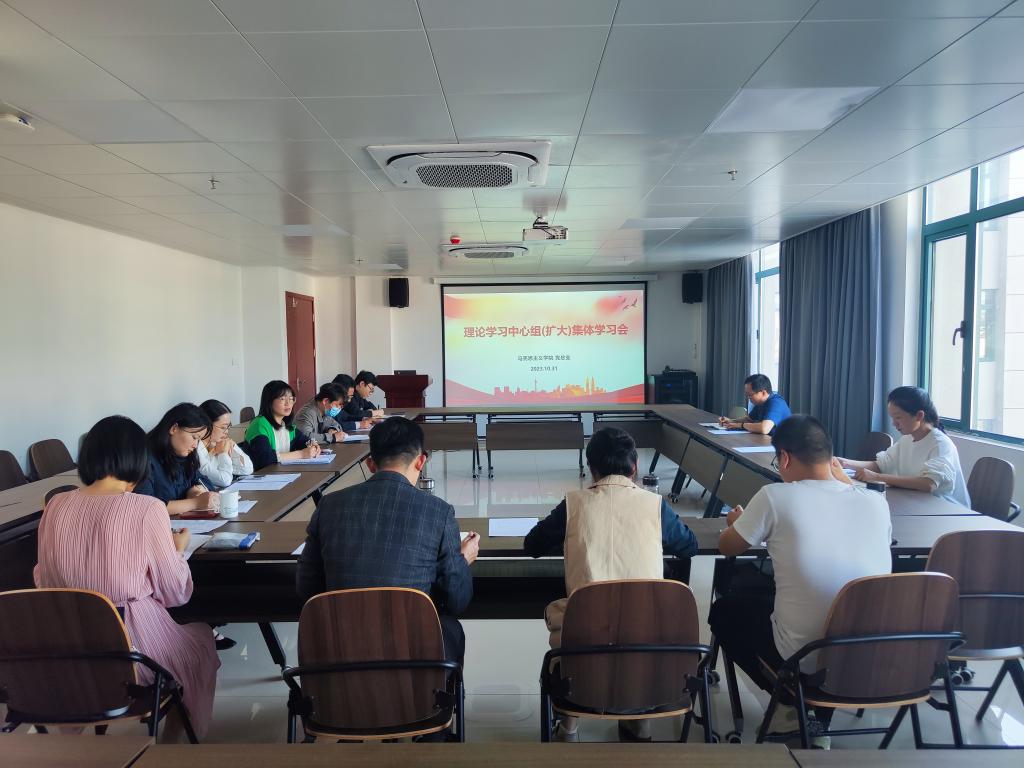 10月31日下午,马克思主义学院党总支在学术交流中心509会议室召开理论学习中心组(扩大)集体学习会议,学院党总支委员、支部书记、支部委员等参加会议,会议由学院党总支副书记、副院长王晓明主持。