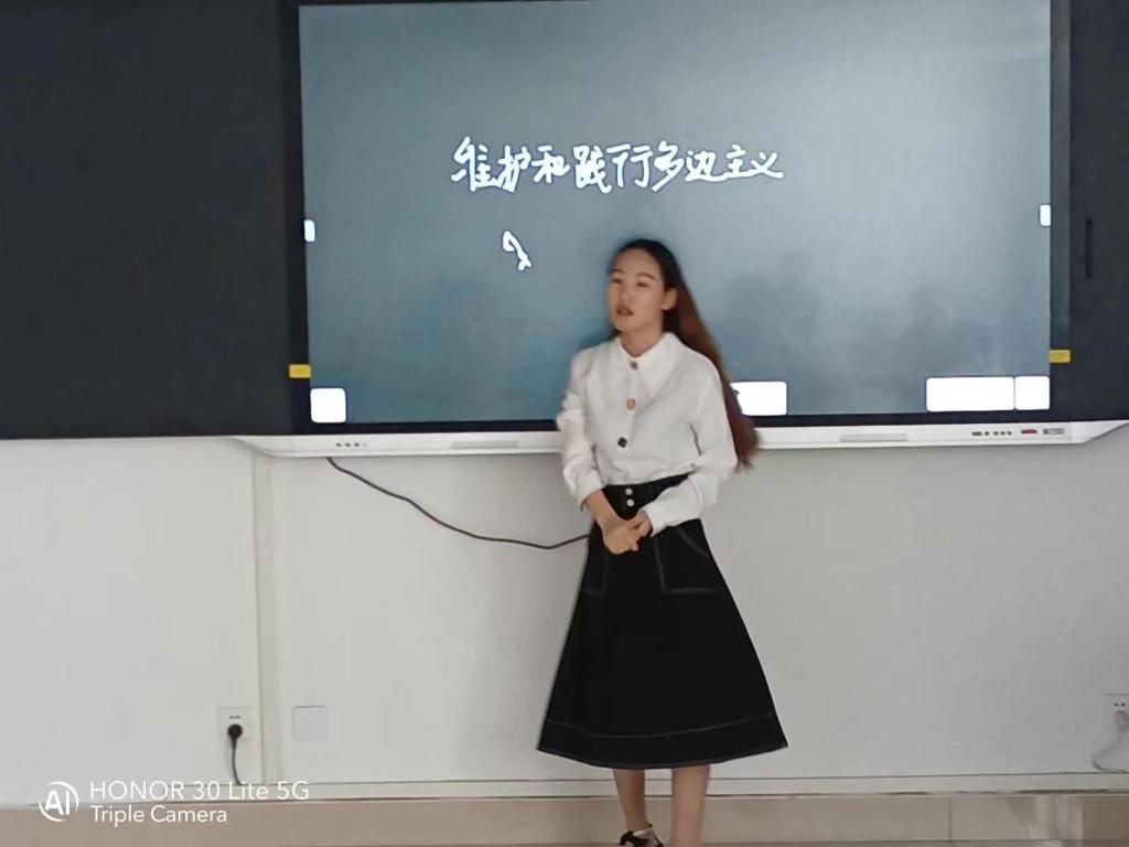 根据常态化疫情防控情况,这次思政课教学技能“大比武”采用云考场、云视讯进行线上比武。按照“大比武”规定流程、竞赛时间,龚甜甜、卫飞、王改丽、胡中一、潘军五位思政教师依次进行模拟比武。采用专题化教学模式,贯彻OBE教育理念,创新教育教学方式,从仪态着装,内容凝练、教学方法等方面进行全面展示。