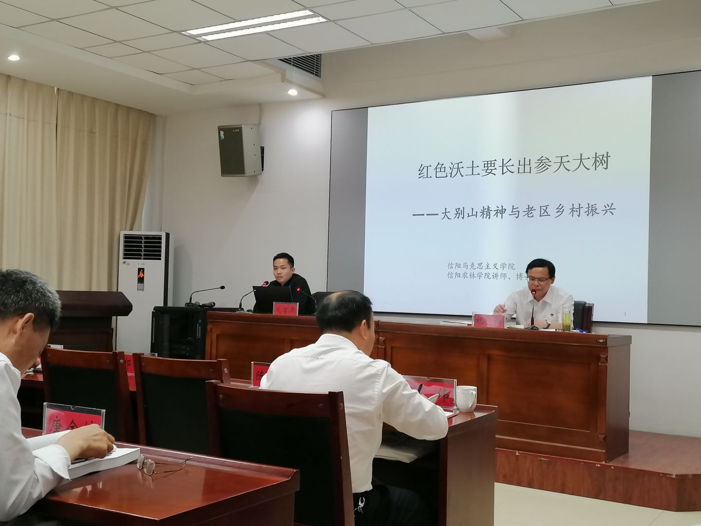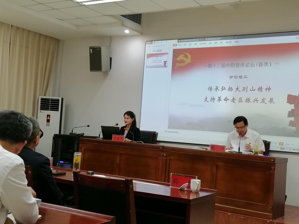 在上午的大会发言中,广东省社科院党组书记郭跃文等专家分别就特区精神、延安精神、井冈山精神、西柏坡精神、大别山精神、南水北调精神的弘扬及其时代价值等议题作专题报告。下午设立了四个分论坛,潘军老师和张家燕老师分别在第二分论坛作主题发言。潘军在题为《大别山精神与老区乡村振兴》的发言中指出,大别山革命老区与发达地区在发展上还有较大差距,老区干部和群众要有奋力实现习近平总书记提出的“两个更好”目标的“坚定信念”,并在乡村振兴战略中“勇当前锋”“团结奋进”。高质量实现“两个更好”也是大别山精神之“胸怀全局”的要求。张家燕在题为《红二十五军长征和大别山精神研究现状分析》的发言中认为,大别山研究的重复性倾向明显,对大别山精神的挖掘深度还不够,“相关研究的深度、广度、视角、方法等都还亟待提升”。大别山精神的研究主体主要停留在大别山革命老区,缺乏开放性,需要与有能力的研究机构建立研究共同体。