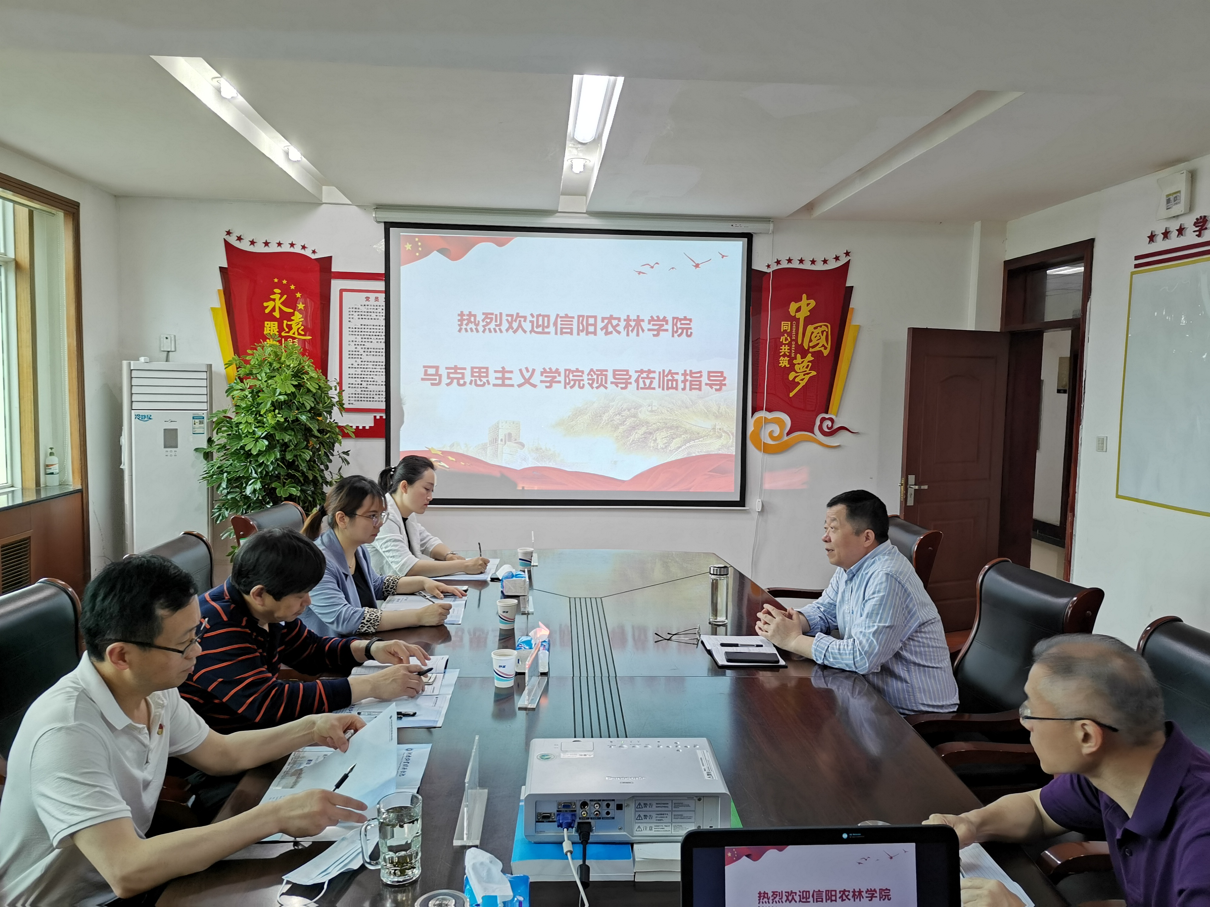 为扎实推进马克思主义学院本科教学工作合格评估的准备工作,学习借鉴兄弟高校经验和成功做法,5月14日,马克思主义学院院长邱兴平、副院长周俊等一行5人前往河南牧业经济学院马克思主义学院进行学习考察。河南牧业经济学院马克思主义学院院长白翔、马克思主义基本原理概论教研室主任吴保来参加了交流会。