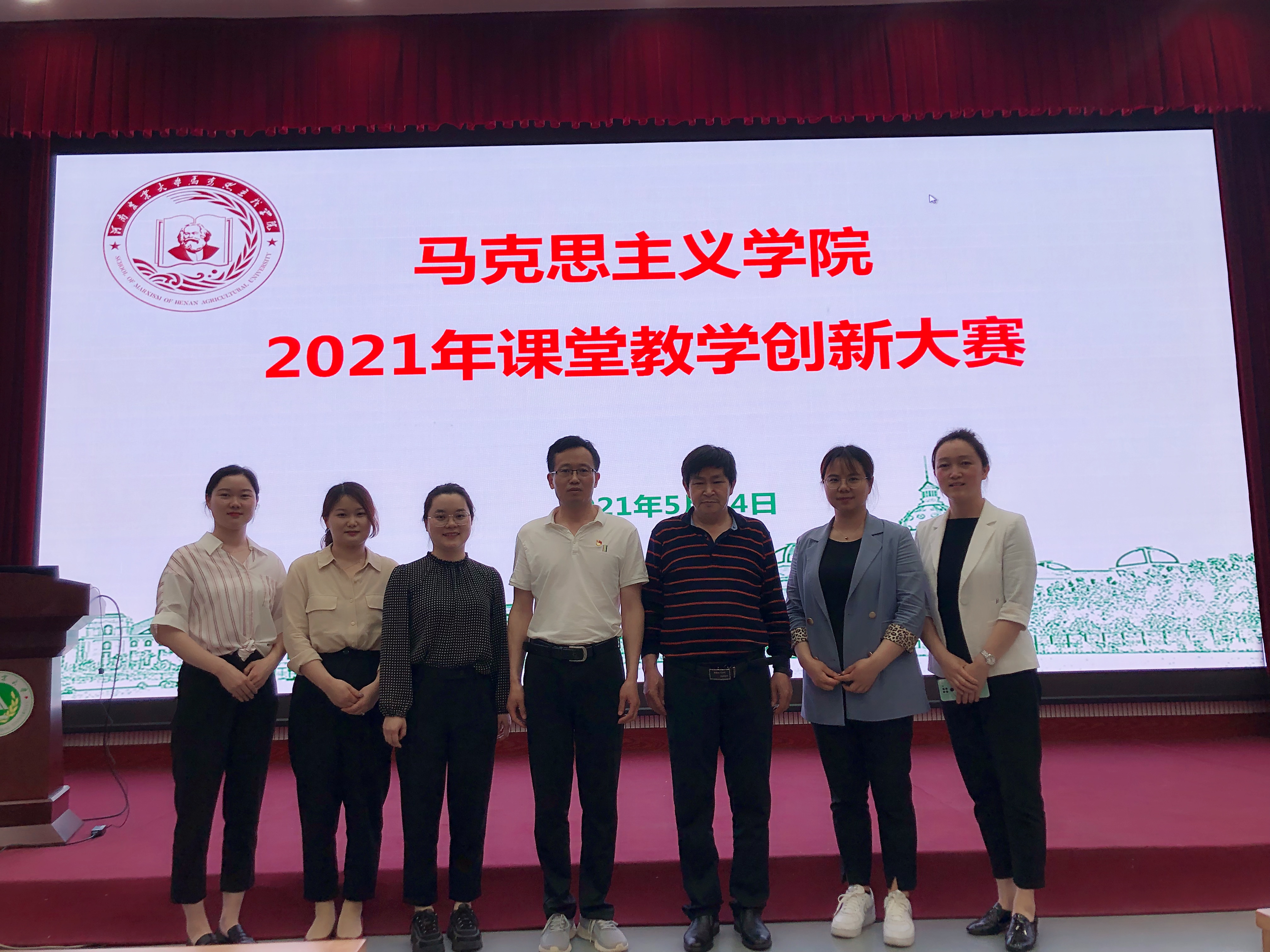 5月14日下午,beat365在线平台官网马克思主义学院长邱兴平、副院长周俊一行7人赴河南农业大学马克思主义学院观摩学习2021年课堂教学创新大赛(青年组)。《河南教育》杂志社主编高杨、郑州大学马克思主义学院副院长杨静娴教授、beat365在线平台官网马克思主义学院院长邱兴平教授、郑州商学院马克思主义学院院长张党诺教授、河南中医药大学马克思主义学院刘金鸽教授应邀担任评委。