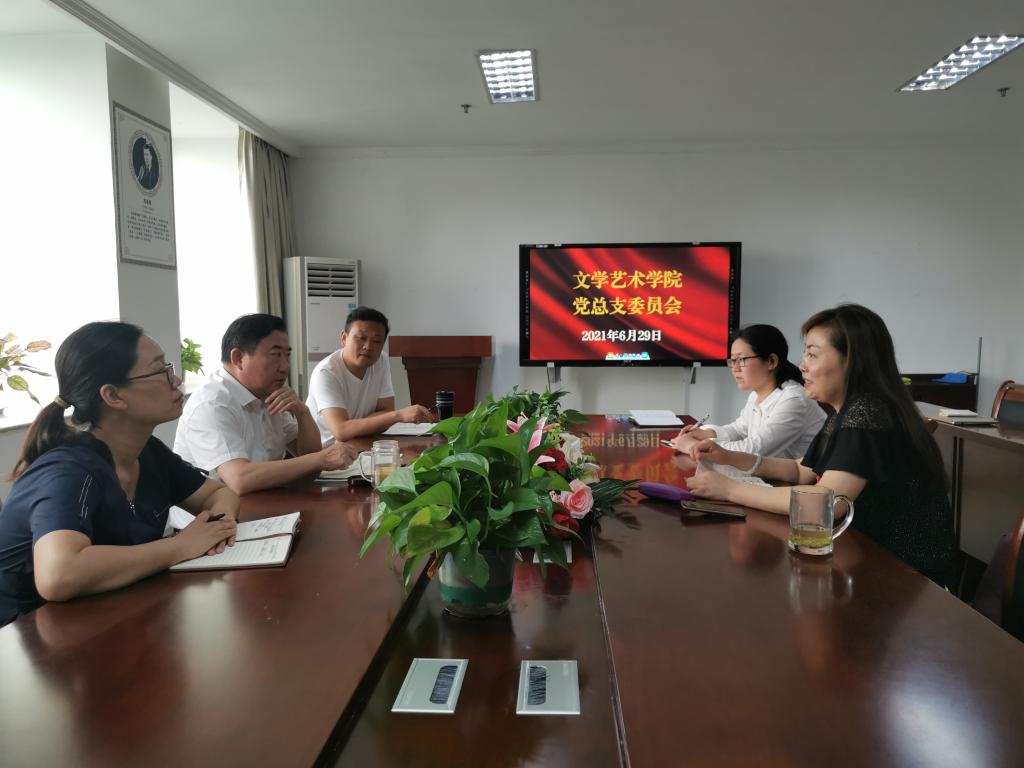 2021年6月29日下午,文学艺术学院召开中心组学习会议,专题学习了《关于若干历史问题的决议》、《关于建国以来党的若干历史问题的决议》和习近平总书记在参观“‘不忘初心、牢记使命’中国共产党历史展览”时重要讲话精神。会议由院党总支书记关照霞主持,中心组全体成员参会。