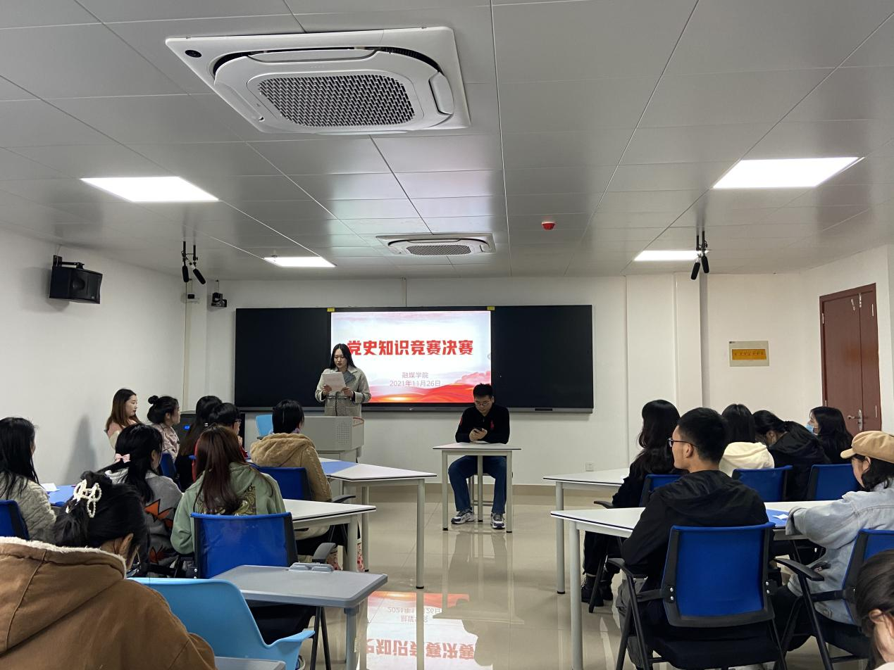为全面学习宣传贯彻党的十九届六中全会精神,庆祝中国共产党成立100周年,推动党史学习教育走深走实,11月26日,融媒学院学生党支部在学术交流中心406教室举办“学百年党史、做时代新人”党史知识决赛。