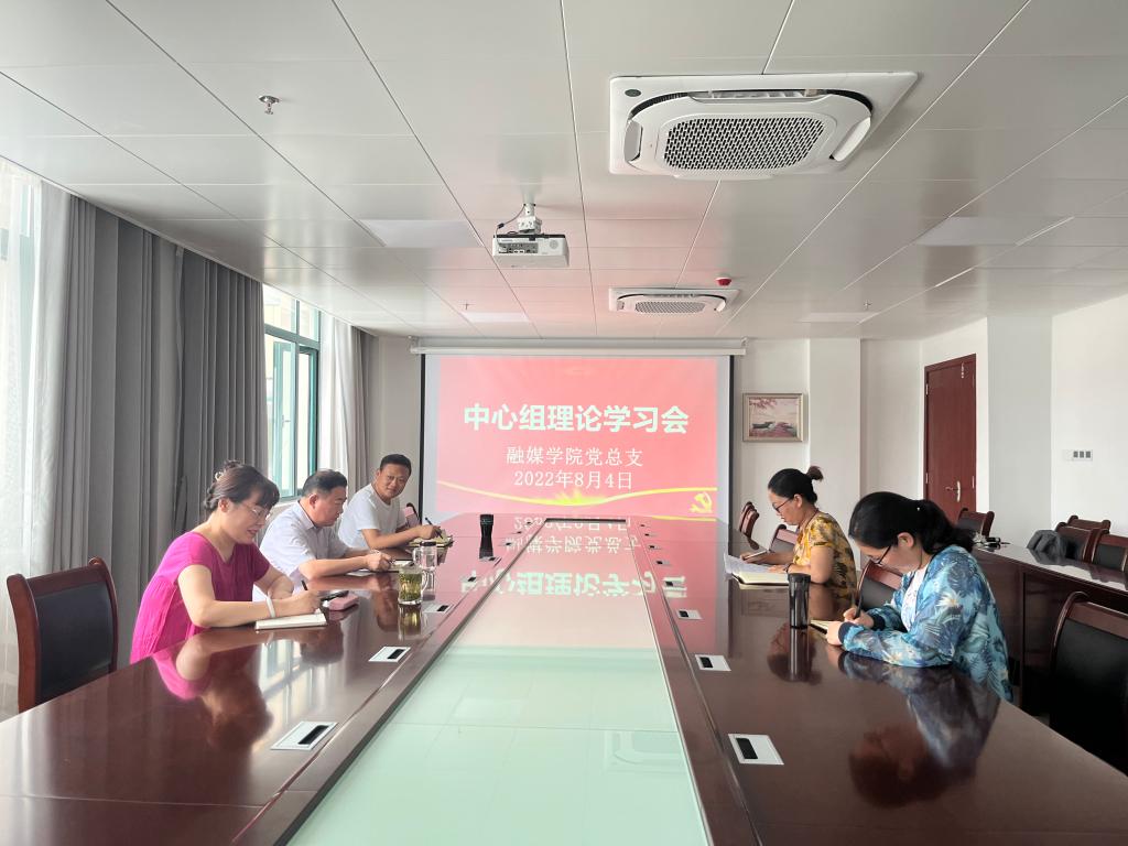 融媒学院中心理论学习组8月4日召开了学习会,学院党总支书记关照霞主持会议,全体成员参会。