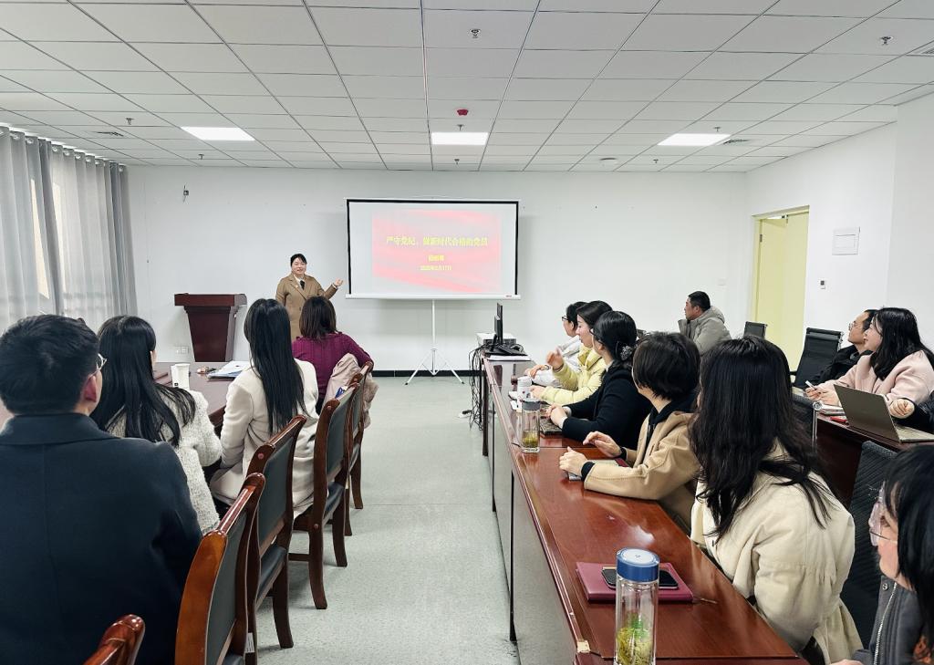 人文与传播学院于2月17日在艺术楼416会议室成功举办了一场主题为 “严守党纪,做新时代合格的党员” 的专题党课活动。本次活动由人文与传播学院教工党支部嵇丽娜同志担任主讲,全体党员干部及部分群众代表共同接受了一次深刻而生动的党性教育。