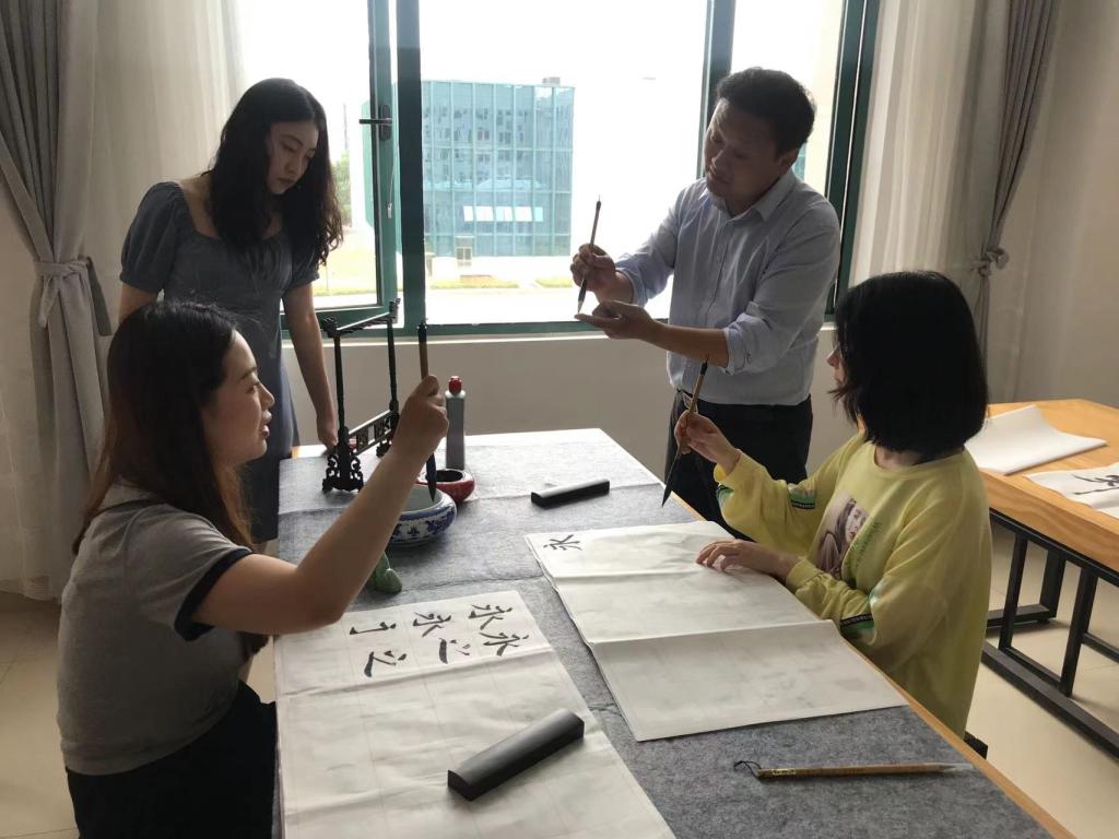 书法是中华民族传统的文化瑰宝,其内涵丰富、博大精深。为丰富学院教职工的业余文化生活,增强个人修养,6月2日,融媒学院分工会购买了毛笔套装,利用课余时间邀请副院长何鑫指导教师们练习书法。