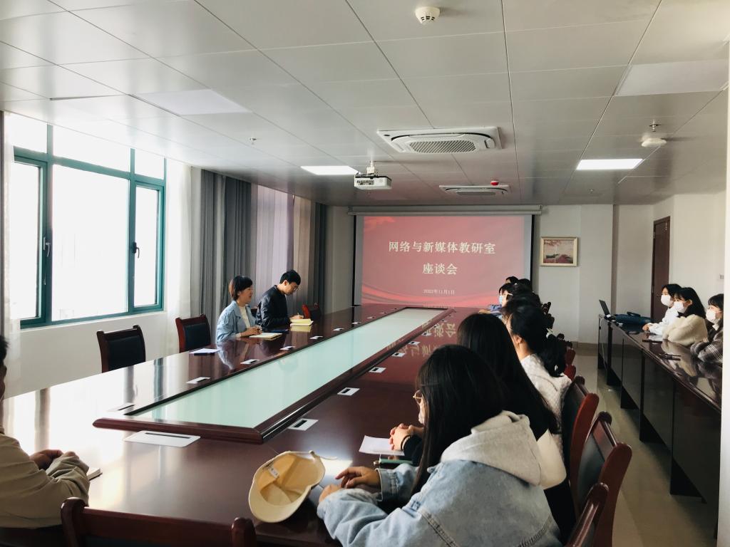 为了解学生思想动态,倾听学生对于教学管理方面的意见和建议,按照学校期中教学检查相关要求,11月1日,网络与新媒体教研室在学术交流中心415办公室组织召开2022-2023学年第一学期学生座谈会,来自网络与新媒体专业的20名学生参与了座谈会。座谈会由教研室主任王淑君老师主持,青年教师彭博、周姣姣参与了会议。