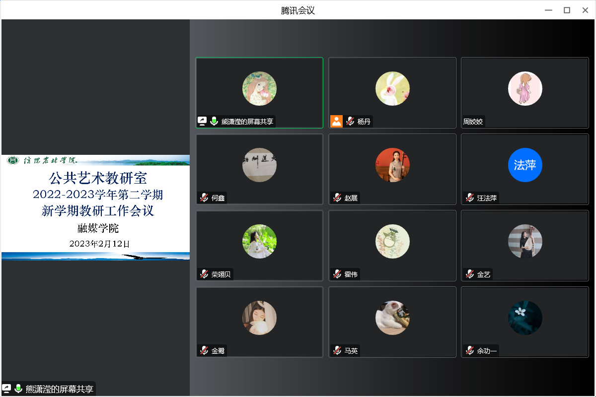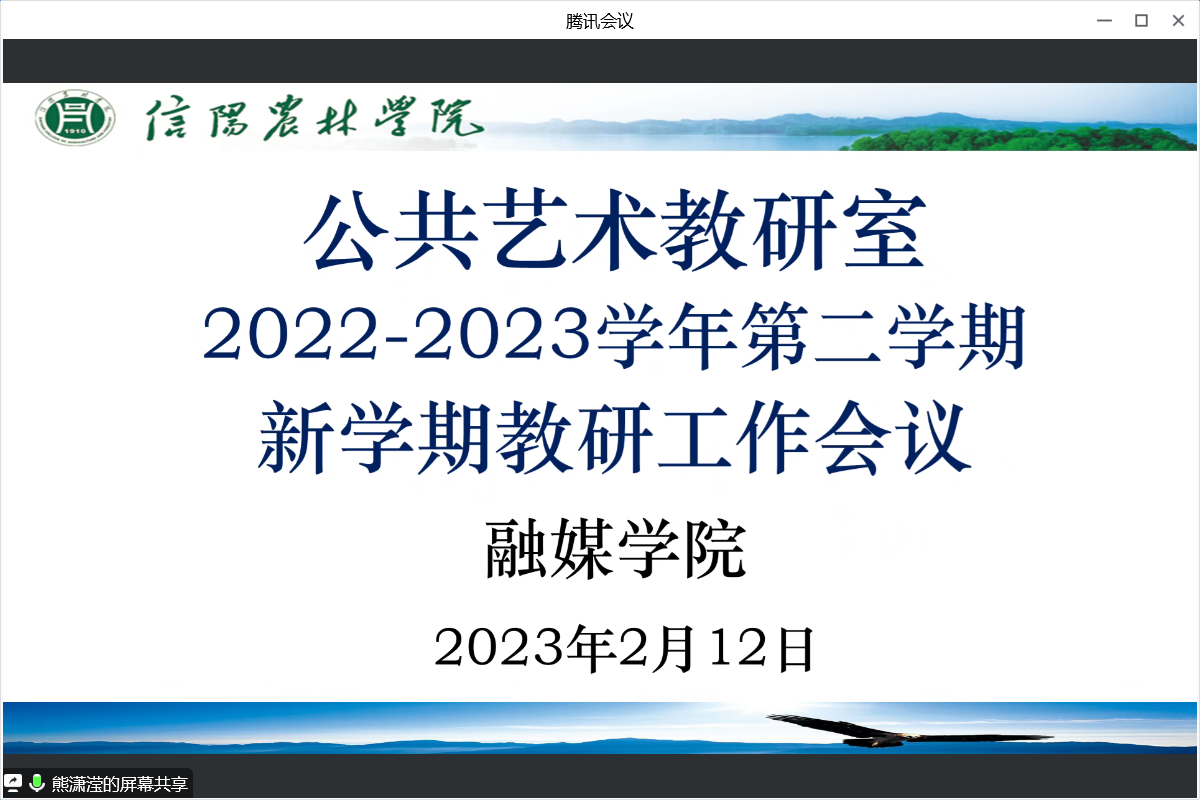 2月12日下午,公共艺术教研室召开了新学期教研会议,教研室全体教师参加会议。会议由公共艺术教研室副主任熊潇滢主持。会议对新学期的教学工作提出了要求。