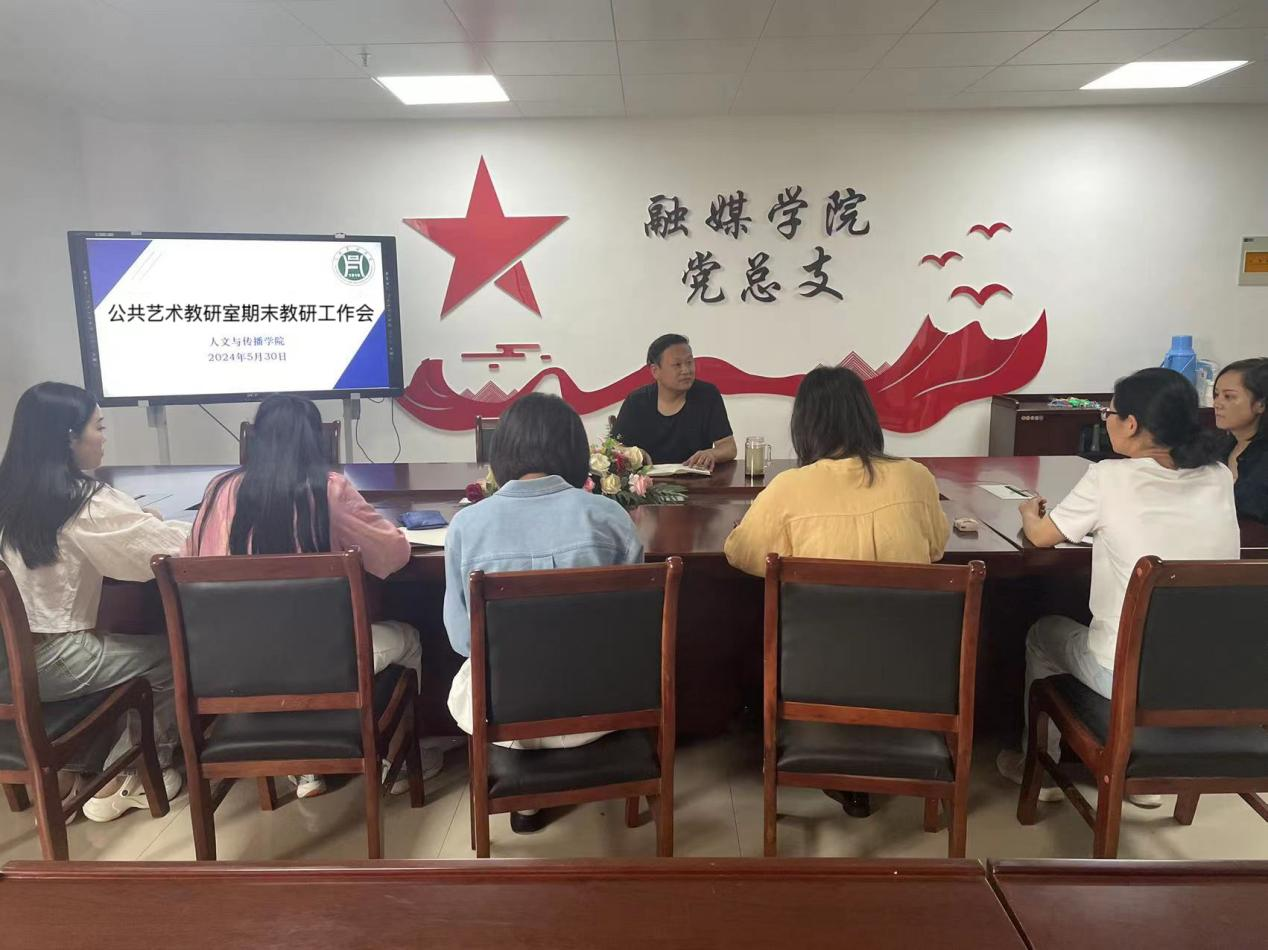 5月30日上午,公共艺术教研室在学术交流中心409会议室召开2023-2024学年第二学期期末考核工作会。副院长何鑫、公共艺术教研室副主任杨丹及教研室全体教师参加会议。会议由杨丹主持。