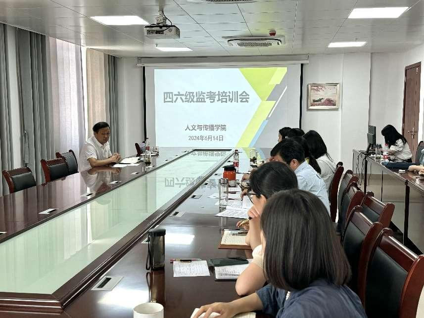 全国大学英语四、六级考试将于6月15日进行。为加强考务管理,严肃考试纪律,确保beat365在线平台官网2024年6月全国大学英语四、六级考试工作的顺利进行,6月14日上午,人文与传播学院在学术交流中心4楼415会议室组织召开了考务培训会,人文与传播学院副院长何鑫主持培训会,学院全体监考教师参会。