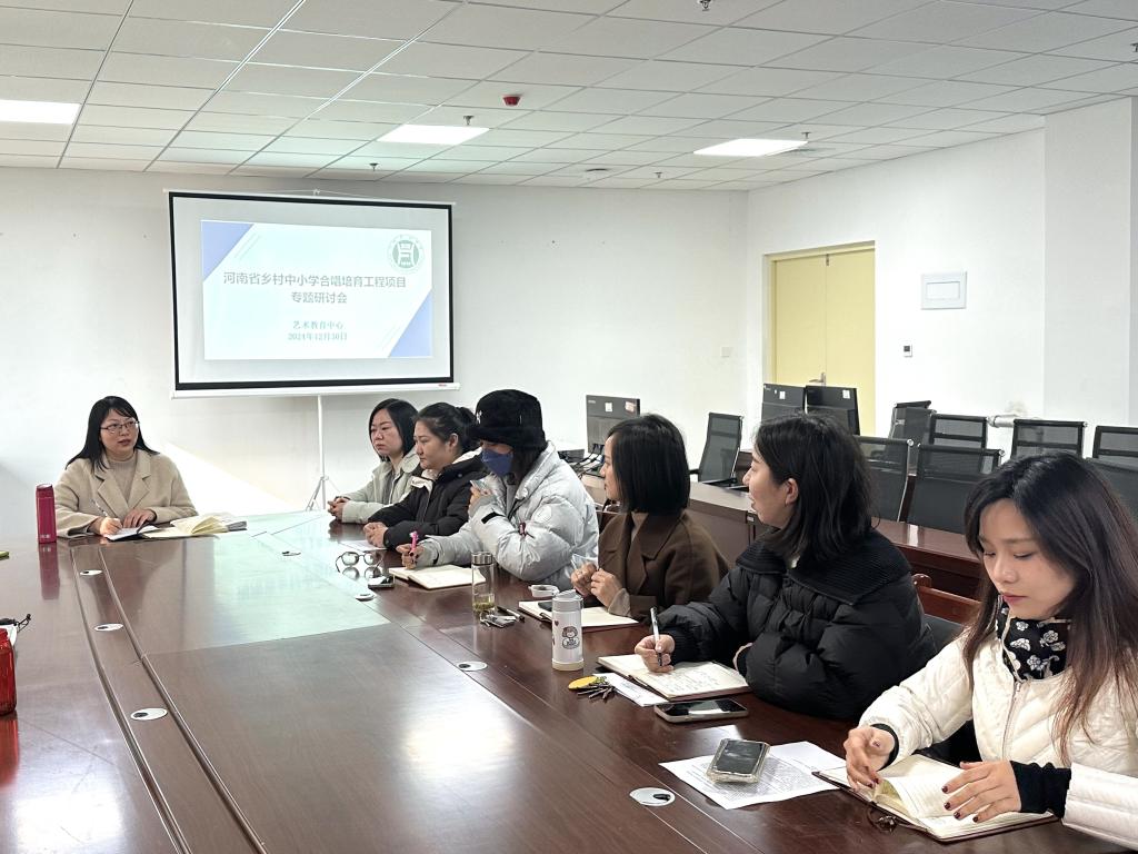 为扎实推动河南省第二批乡村中小学合唱培育工程稳步前行,12月30日,在艺术楼416室,一场汇聚智慧与热情的专题研讨会热烈召开,河南省乡村中小学合唱培育工程团队骨干教师齐聚一堂,会议由艺术教育中心熊潇滢主持。