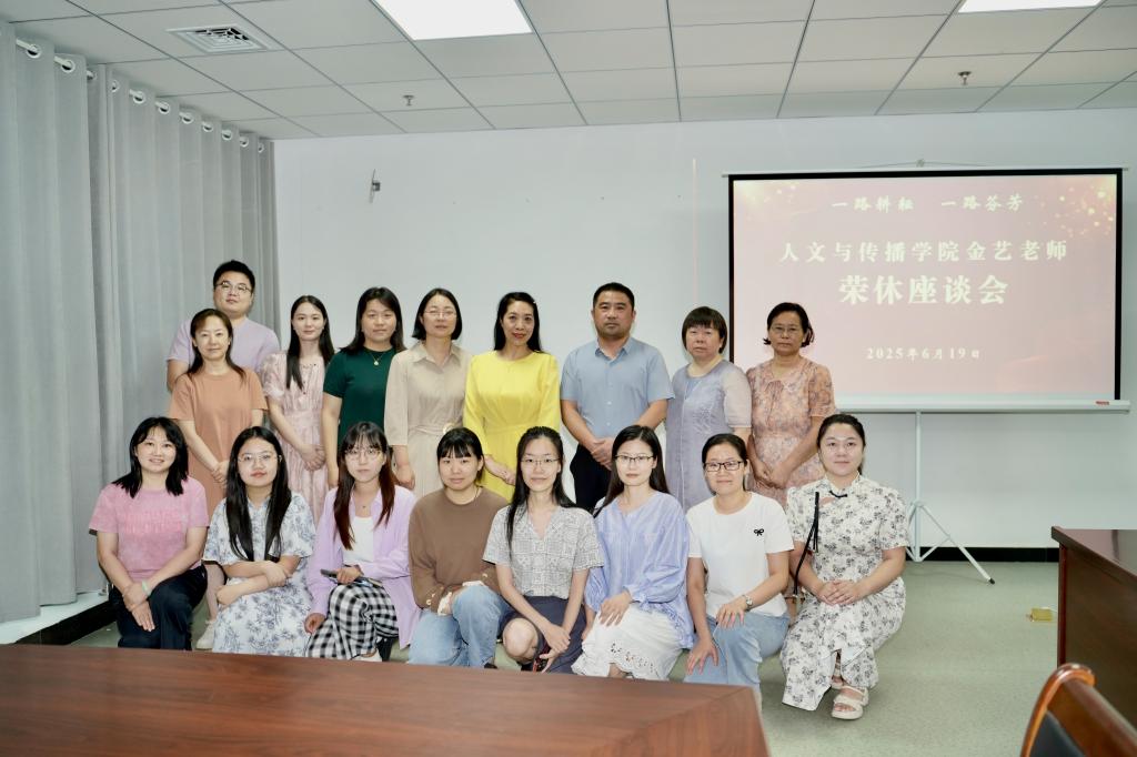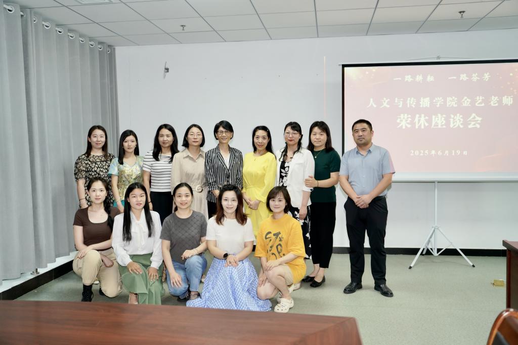 6月19日,人文与传播学院在艺术楼南楼416举办“一路耕耘,一路芬芳”金艺老师荣休座谈会,学校党委副书记王万玲出席会议并致辞,学院班子成员及全体教师参加了座谈会。座谈会由学院党委书记李华清主持。