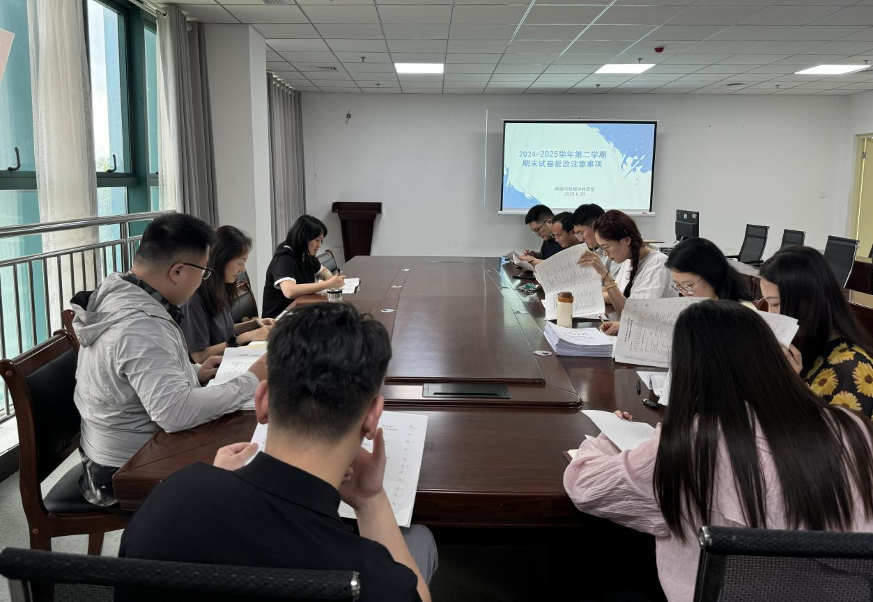 会议最后,教研室组织全体教师学习期末试卷批阅规范。付静宇结合学校最新要求,详细讲解了试卷评阅的评分标准、核分细则及归档流程,强调务必做到公平、严谨、零差错。与会教师就批阅中常见问题展开交流,进一步统一了标准,为期末考核工作的顺利完成提供了保障。