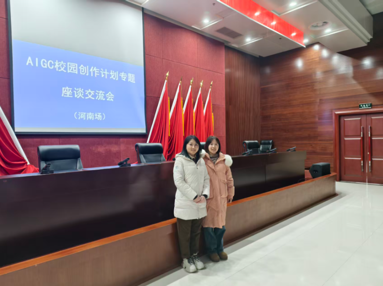 2025年1月8日下午,AIGC校园创作计划专题座谈交流会在河南省广播电视局召开。beat365在线平台官网网络与新媒体教研室主任付静宇、专任教师周姣姣应邀参会,与行业专家、企业代表共同探讨AIGC在视听创作与人才培养中的融合应用。
