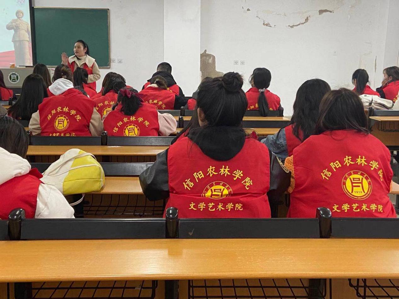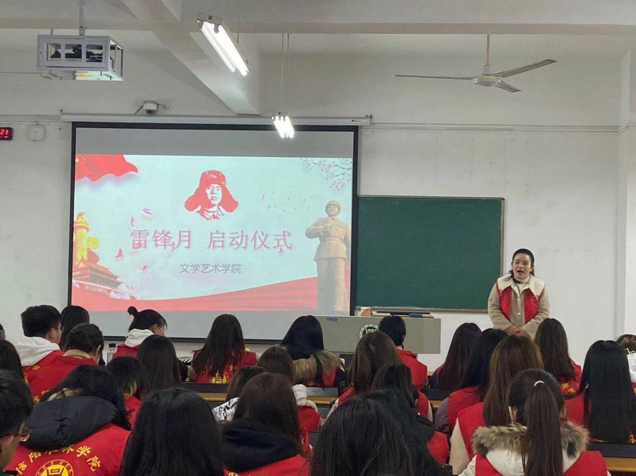 学习雷锋好榜样,志愿服务我在行。为传承红色基因,弘扬雷锋精神,献礼党的百年华诞,3月11日下午,文学艺术学院在2教举行“学习雷锋月”系列活动启动仪式——雷锋精神宣誓、宣讲会。文学艺术学院团总支书记曾珠,辅导员李依然、郜若霖以及文学艺术学院全体在校学生参与此次活动。