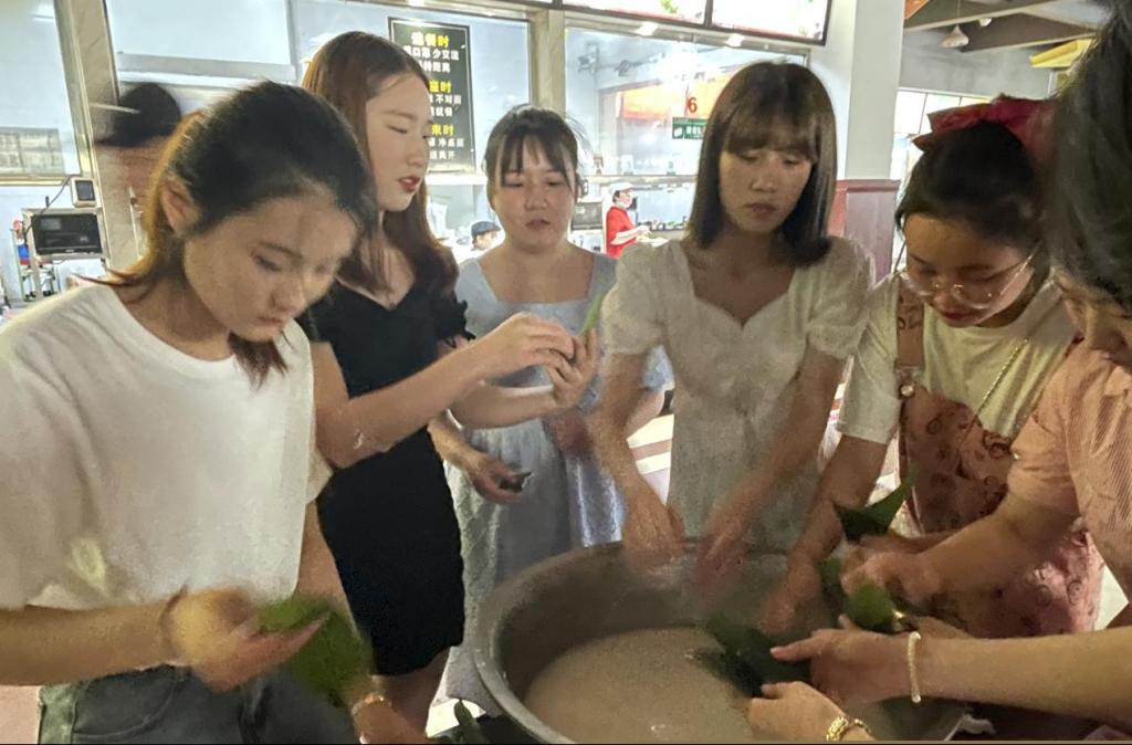 南国风俗美,端午闻粽香,家门挂艾草,龙舟竞过江。端午节是中国的传统节日,为传承中华优秀传统文化,深入践行劳动教育,2021年6月6日文学艺术学院学工组教师与学生们在一餐一楼举办“端午˙粽香传情”包粽子活动。