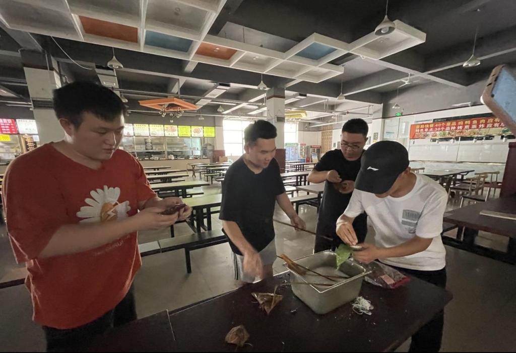 学生们在辅导员老师的指导下活动灵巧的双手,兴致勃勃地包起了粽子。一开始,大家有些手忙脚乱,包出的粽子形状千奇百怪。大家纷纷表示“包粽子还是是一项技术活呢,需要认真学习”。渐渐地,同学们从匆忙到从容,一个个像模像样的粽子横空出世,一锅锅清香的粽子新鲜出炉,青绿的粽叶里是大家满满的情谊。