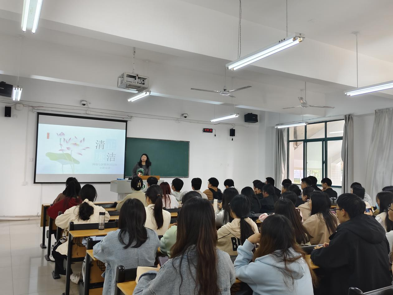 为全面贯彻落实习近平新时代中国特色社会主义思想、党的二十大精神,按照学校2023年全面从严治党工作安排,厚植廉洁文化根基,营造清正廉洁的氛围,2023年10月24日,网络与新媒体2022级在二教105教室开展“清正廉洁守初心 踔厉奋发担使命”廉洁自律专题宣讲。