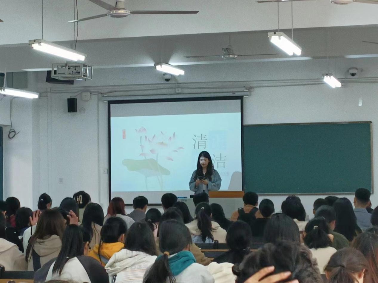 清风扬正气,廉韵沁人心。本次宣讲活动通过理论化宣讲、沉浸式分享、互动式交流的形式使“清廉之风”真正吹入每位同学的心中。引导青年学生打好廉洁的思想基础,树立廉洁自律的风向标,诚实守信、廉洁修身,扣好廉洁人生的“第一粒扣子”,努力成长为担当民族复兴大任的时代新人。(撰稿/王怡凡 摄影/胡甜雨)