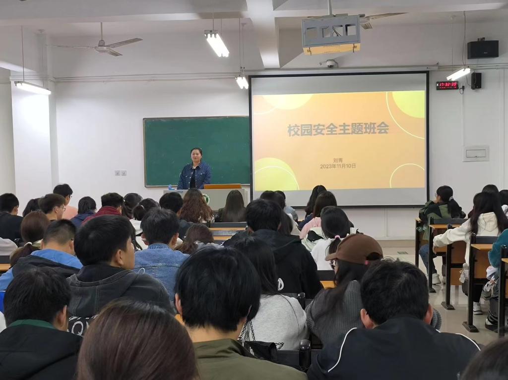 辅导员郜若霖通过图文并茂的方式向同学们展示了近年来发生的一些校园安全事件。郜老师用生动的案例和详尽的数据,向学生们阐述了校园交通安全、网络安全、防食物中毒、防溺水等方面的安全知识。在网络安全方面,郜老师强调了学生在使用互联网时要注意保护个人隐私和防范网络诈骗。她指出,学生应该正确使用互联网,不随意点击不明链接、不泄露个人信息,同时也要学会识别网络诈骗,避免上当受骗。在防食物中毒方面,郜老师强调了食品安全和卫生的重要性。她提醒同学们要注意饮食卫生,不要购买和使用不干净的食品,避免因食物中毒而影响健康。