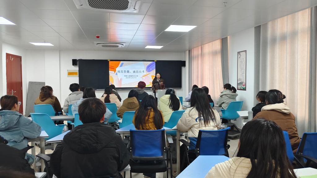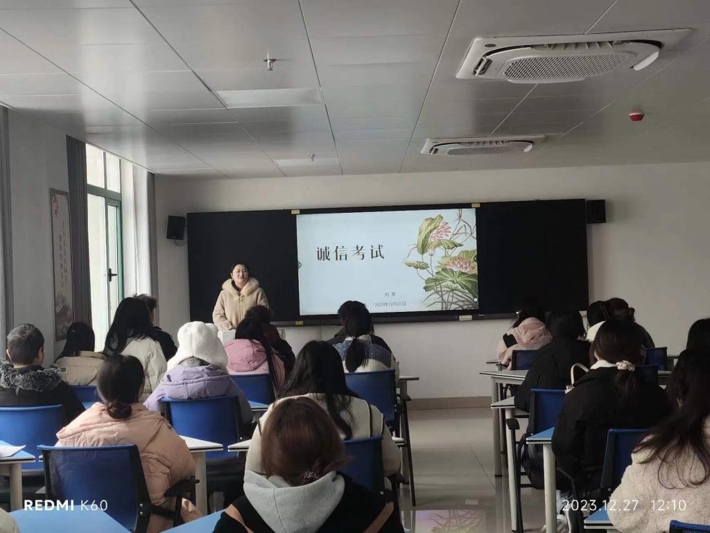 2023级辅导员刘青对学生强调了诚信考试的重要性,列举了作弊行为的危害和后果,希望同学们秉持实事求是的原则,严格遵守考试要求,杜绝一切作弊行为。同时她还提醒同学们越是临近考试,越是要调整好心态,采取科学的复习方法,以最好的精神面貌、积极的态度迎接期末考试。