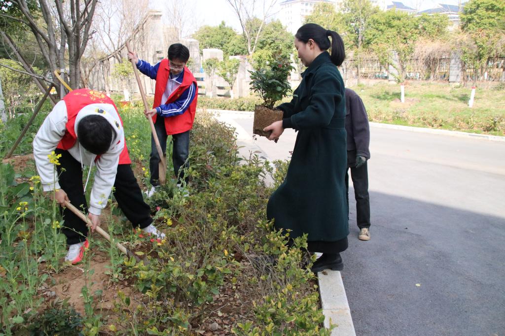 植树现场,大家分工协作,挥锹铲土、扶苗填坑、培土浇水,每一个环节都一丝不苟,呈现出一派热火朝天的劳动景象。经过一个多小时的辛勤劳动,许多新栽种的树苗迎风挺立,为初春的校园增添了一抹新绿。参与活动的志愿者们也热情地分享了自己的感受,他们表示,能够亲手为校园增添一抹绿色,感到非常自豪和开心。