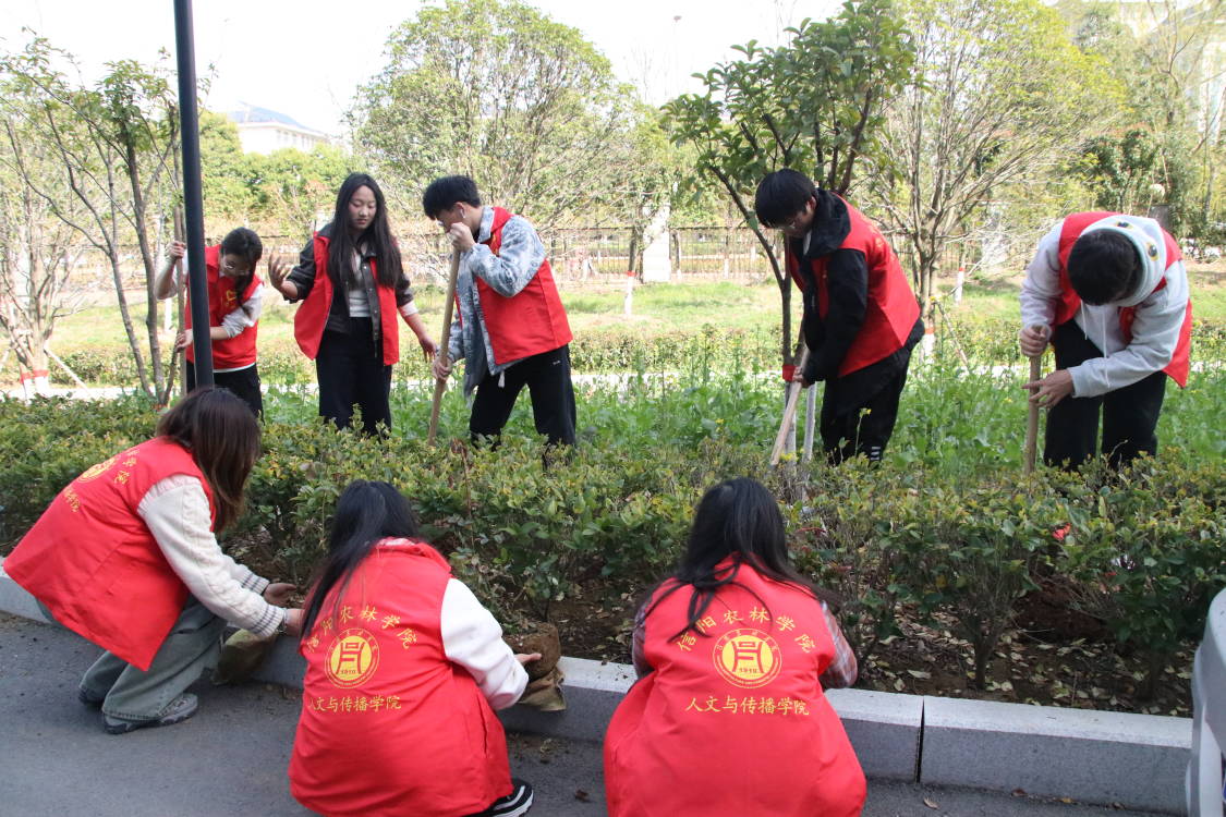 为深入贯彻习近平生态文明思想,践行人与自然和谐共生理念,3月17日下午,人文与传播学院组织20余名志愿者在艺术楼南楼花坛处开展“守护绿色校园”志愿植树活动,旨在通过劳动实践传递绿色发展理念,为校园增添生机,为青春注入责任担当。