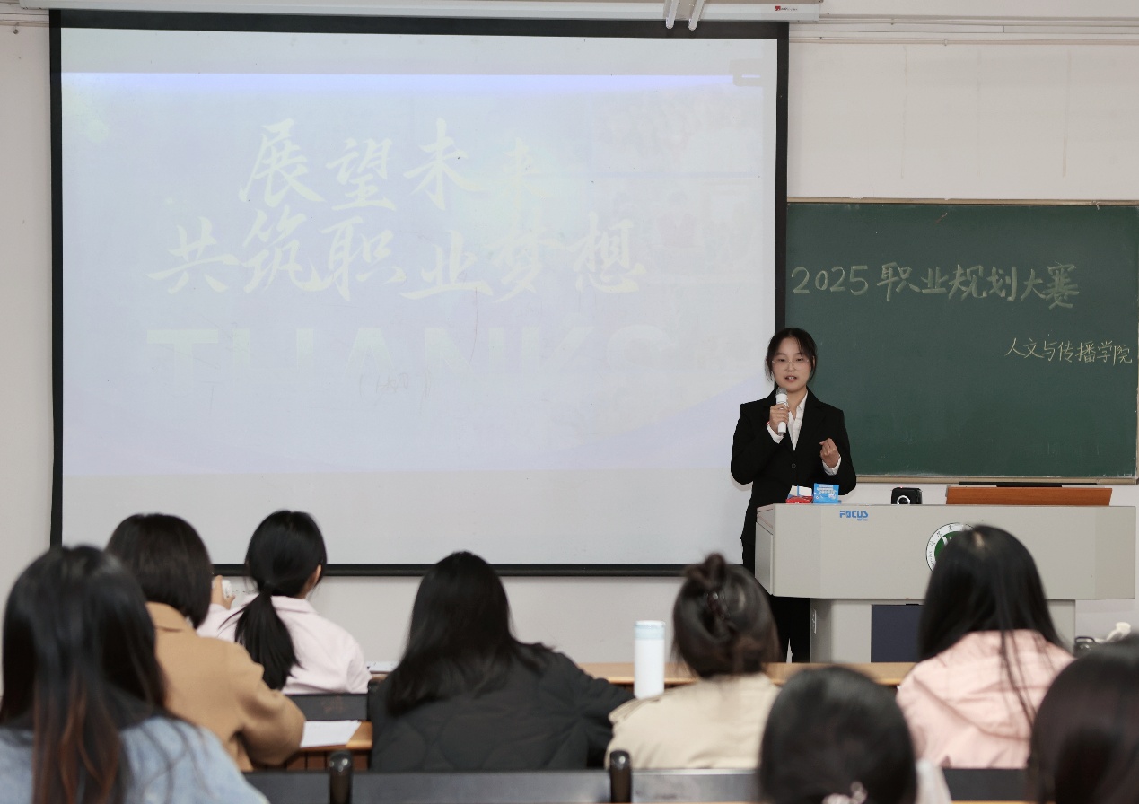 为积极响应学校关于举办大学生职业规划大赛的号召,进一步推动学院就业指导工作走深走实,引导学生科学规划职业发展路径、提升职场适应能力,11月20日,人文与传播学院在二教103教室成功举办2025年大学生职业规划大赛。学院就业工作负责人赵展、杨洋老师出席活动,网络与新媒体教研室教师担任评委。