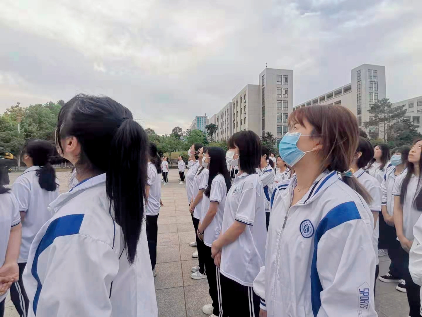 6点50分,英姿挺拔的校国旗护卫队同学护着鲜艳的五星红旗,迈着铿锵有力的步伐,整齐威武地走上国旗台,熟悉的《义勇军进行曲》响起,鲜艳的国旗如同火焰般跳动着。我院全体师同学们满怀敬仰,轻声跟唱,行注目礼。庄严敬礼,在庆祝建党一百周年之际,向伟大祖国致以崇高敬意和深深祝福。