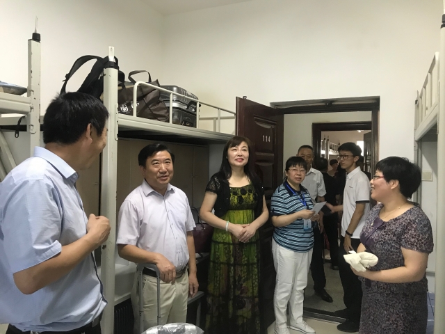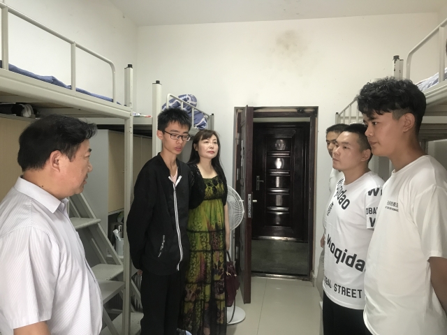在新生宿舍,黄院长和关书记与正在送新生入住的新生家长进行了亲切的交谈。黄院长首先向新生和新生家长表示了热烈的欢迎,接着就家长们关心的问题一一作了解答,并向他们介绍了文秘专业的相关情况,他也提到,面对即将到来的军训,大家不要怕苦,军训不仅是培养一种品格,更是培养我们的集体意识,磨炼我们的意志,经历军训是会让我们终身受益的。关书记提醒同学们要注意安全,提高防范意识,有什么疑问和困难及时跟辅导员老师联系。最后,黄院长鼓励学生,要珍惜三年的大学时光,树立远大的人生目标、努力学习专业知识,争做新时代的文秘人才,成为一个对社会有贡献的人。