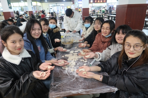在冬至来临之际,为丰富学生的大学生活,加强学生间团结与交流,缓解思乡之情,12月19日,文学艺术学院组织在校学生在一餐厅一楼开展“情满冬至,饺子飘香”包饺子活动。