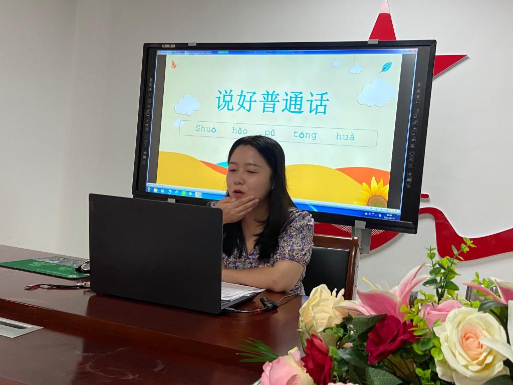 彭孝义老师重点讲述了“什么是普通话”、“为什么要讲普通话”,通过深入浅出的讲解引导孩子们提高认识,主动将“说普通话写规范字”的习惯融入日常生活。张幼乔、李静两位老师通过普通话与地方方言的对比,用生动事例解析了“商城地区容易出现的语音问题”和“商城方言与普通话的区别”。虽然隔着屏幕,但三位教师与孩子们的互动交流趣味盎然、气氛热烈。他们表示,这种推普方式接地气,有实效,更能深刻感受到中华语言文字的魅力。