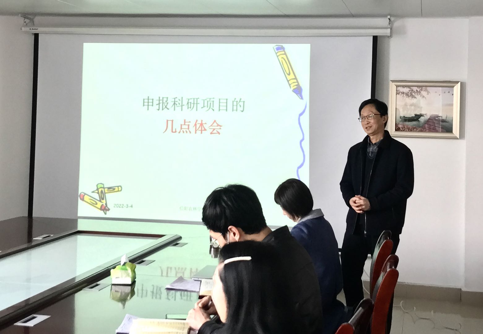 彭孝义老师以“申报科研项目的几点体会”为题,与大家分享了科研与职称评定工作的相关经历。连超锋老师从自信、兴趣、专注、坚持四点入手,对青年教师的科研工作进行了指导。