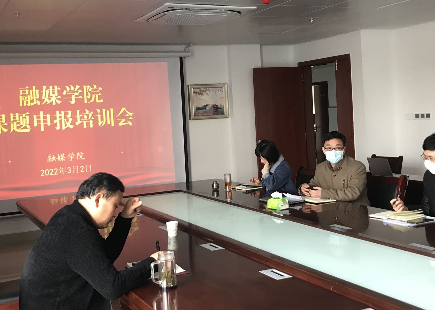 3月4日下午,融媒学院在415会议室召开课题申报培训会,院长黄炎军、副院长何鑫以及全院教师参加了会议。会议由副院长何鑫主持。