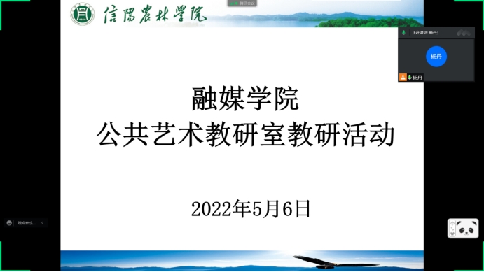 5月6日,公共艺术教研室通过腾讯会议开展线上教研活动。公共艺术教研室全体教师参会,会议由公共艺术教研室副主任杨丹主持。