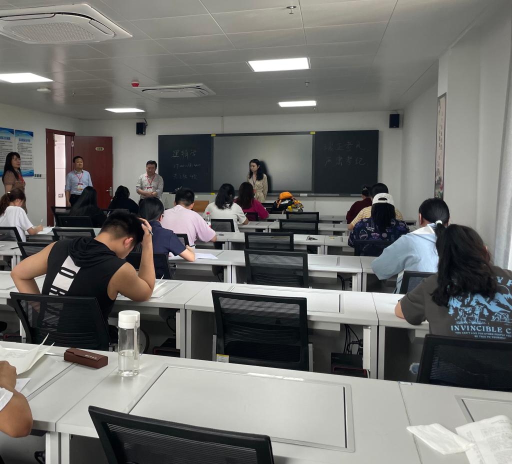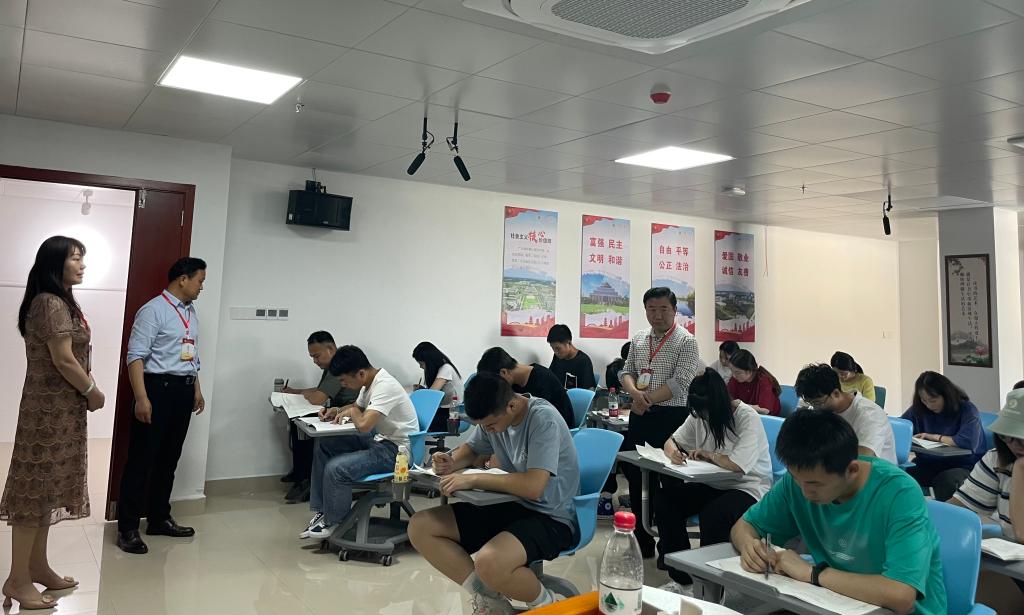5月24日下午,院党总支书记关照霞、院长黄炎军、副院长何鑫深入各考场巡视检查期末考试情况。院领导对考场秩序、监考教师履职、考生纪律、疫情防控等情况进行了全面、细致的检查。从巡查情况来看,学院期末考试工作管理规范,考场环境干净整洁,座位安排符合疫情防控规定,监考老师认真负责,考生专心答题,态度端正,考场秩序井然。