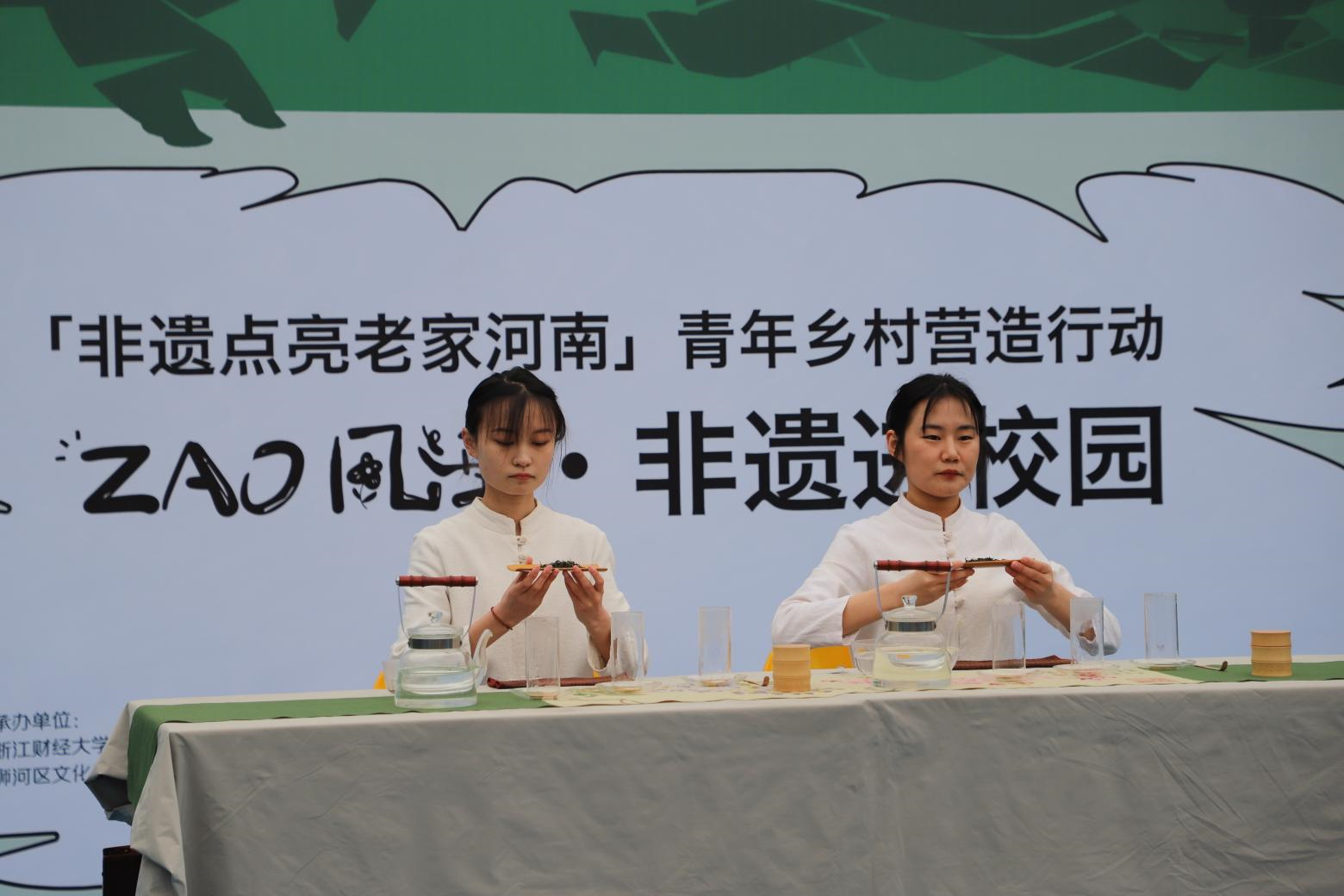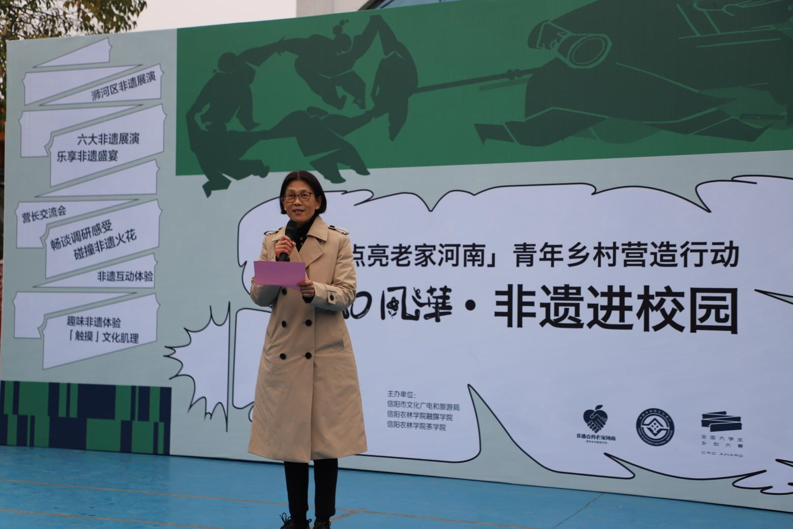 3月19日,由beat365在线平台官网、信阳市文广旅局共同主办,beat365在线平台官网融媒学院、浙江财经大学中国乡村振兴研究院、浉河区文广旅局承办的“非遗点亮老家河南”青年乡村营造行动系列活动之“ZAO风华·非遗进校园”在一餐广场举办。副校长王万玲出席活动现场并致辞。