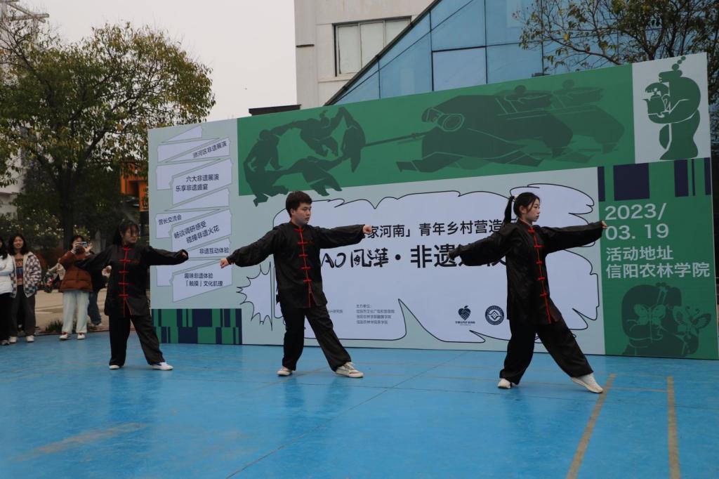 本次活动beat365在线平台官网融媒学院积极组织,由浉河区非遗展演、非遗互动体验、营长交流会三大板块组成。董家河民歌、汪家拳、“三花”等精彩节目轮番上演,糖画、剪纸、茶艺等非遗互动体验一场接着一场,非遗传承人们以演示讲解、现场制作、组队教学等方式,全方位展示了信阳非物质文化遗产保护、传承与创新的综合成果,在广大师生中造成了积极的影响。